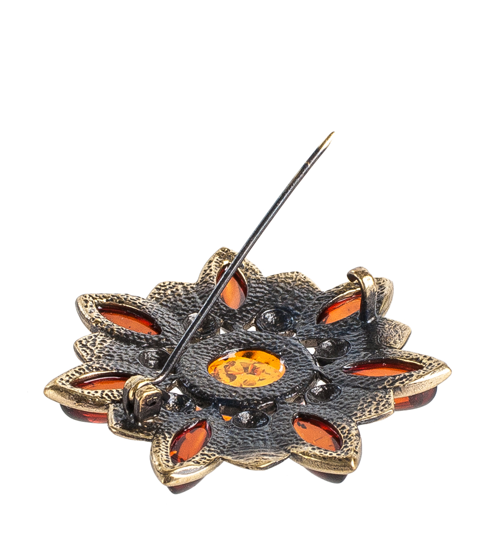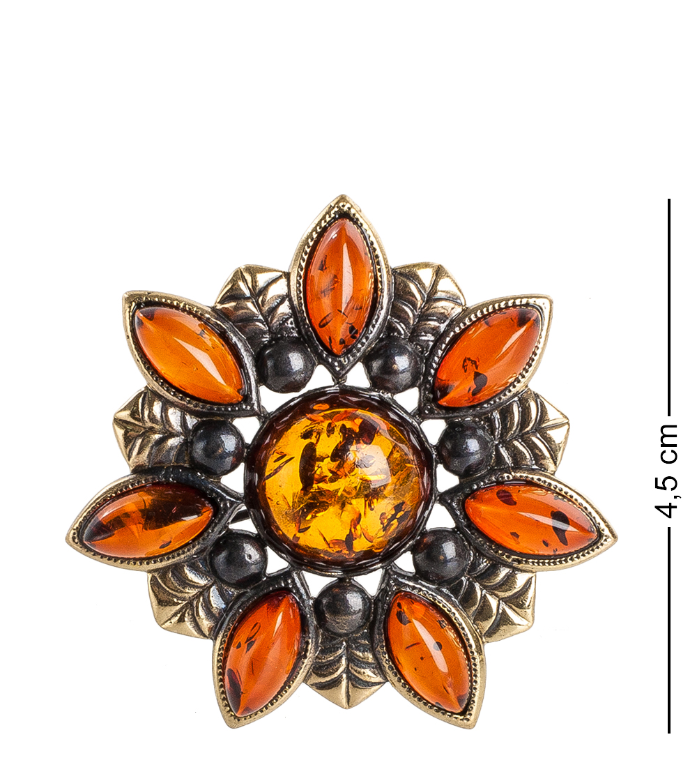 Am- 940 брошь подсолнух (латунь, янтарь)