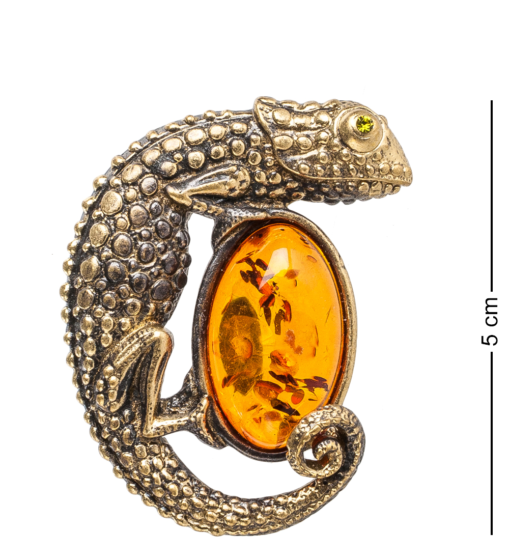 Am- 956 брошь хамелеон (латунь, янтарь)