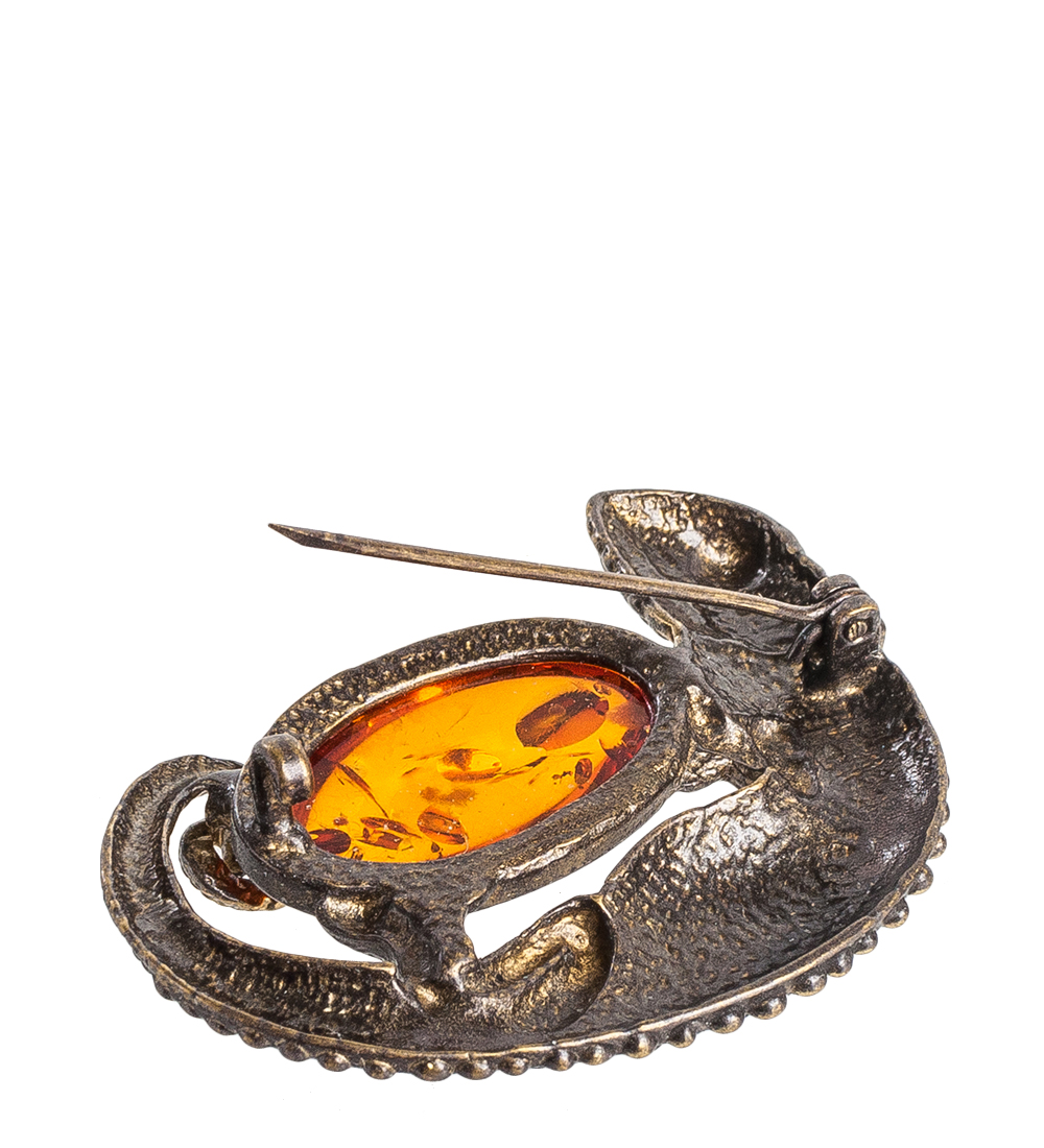 Am- 956 брошь хамелеон (латунь, янтарь).