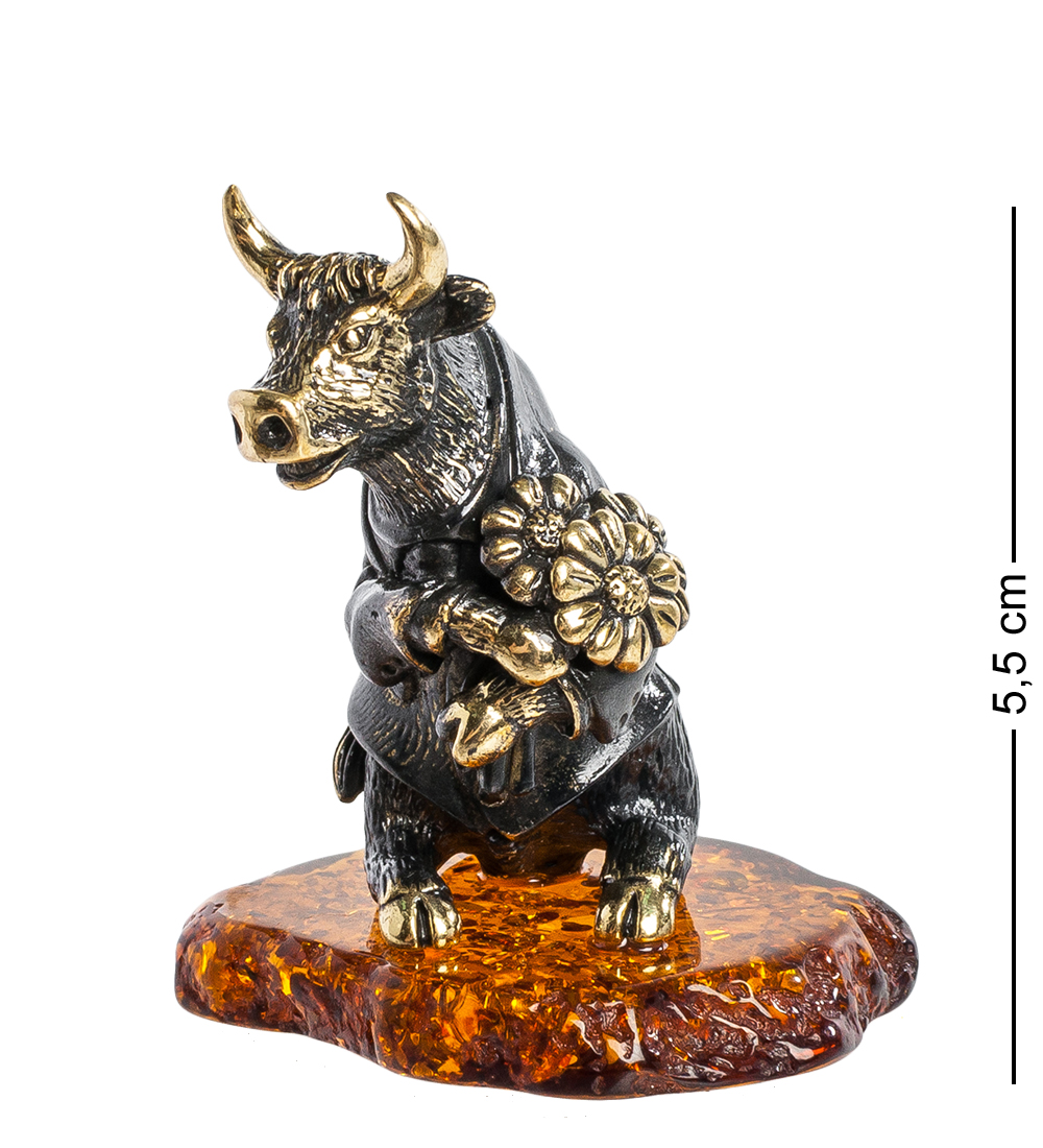 Am- 965 фигурка бык с букетом (латунь, янтарь)