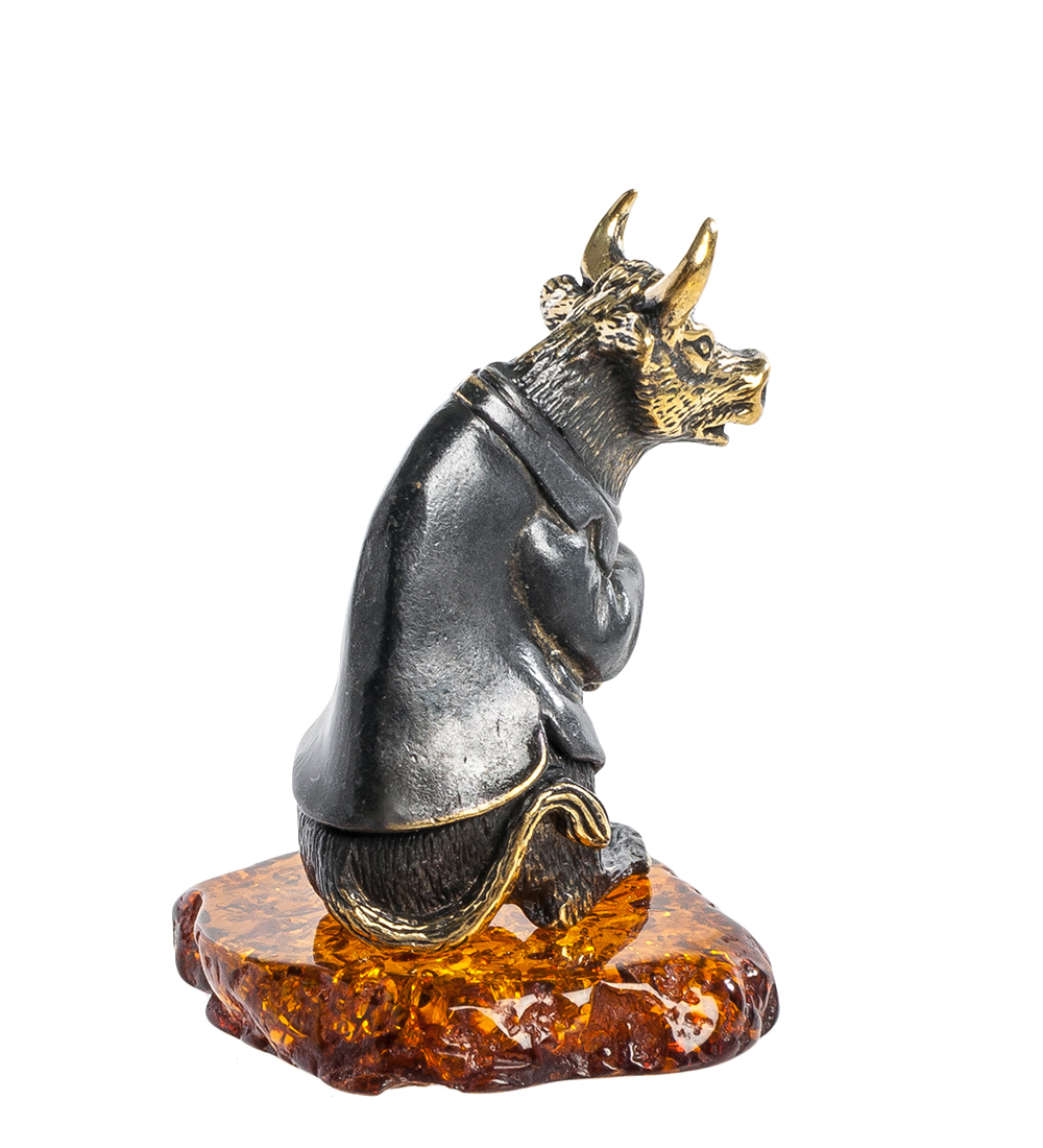 Am- 965 фигурка бык с букетом (латунь, янтарь) Am- 965 фигурка бык с букетом (латунь, янтарь)
