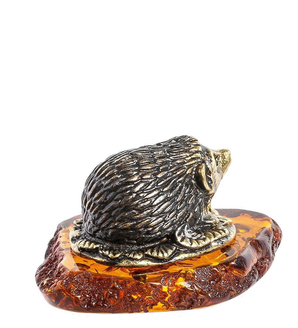 Am- 978 фигурка ежик лопоухий (латунь, янтарь)