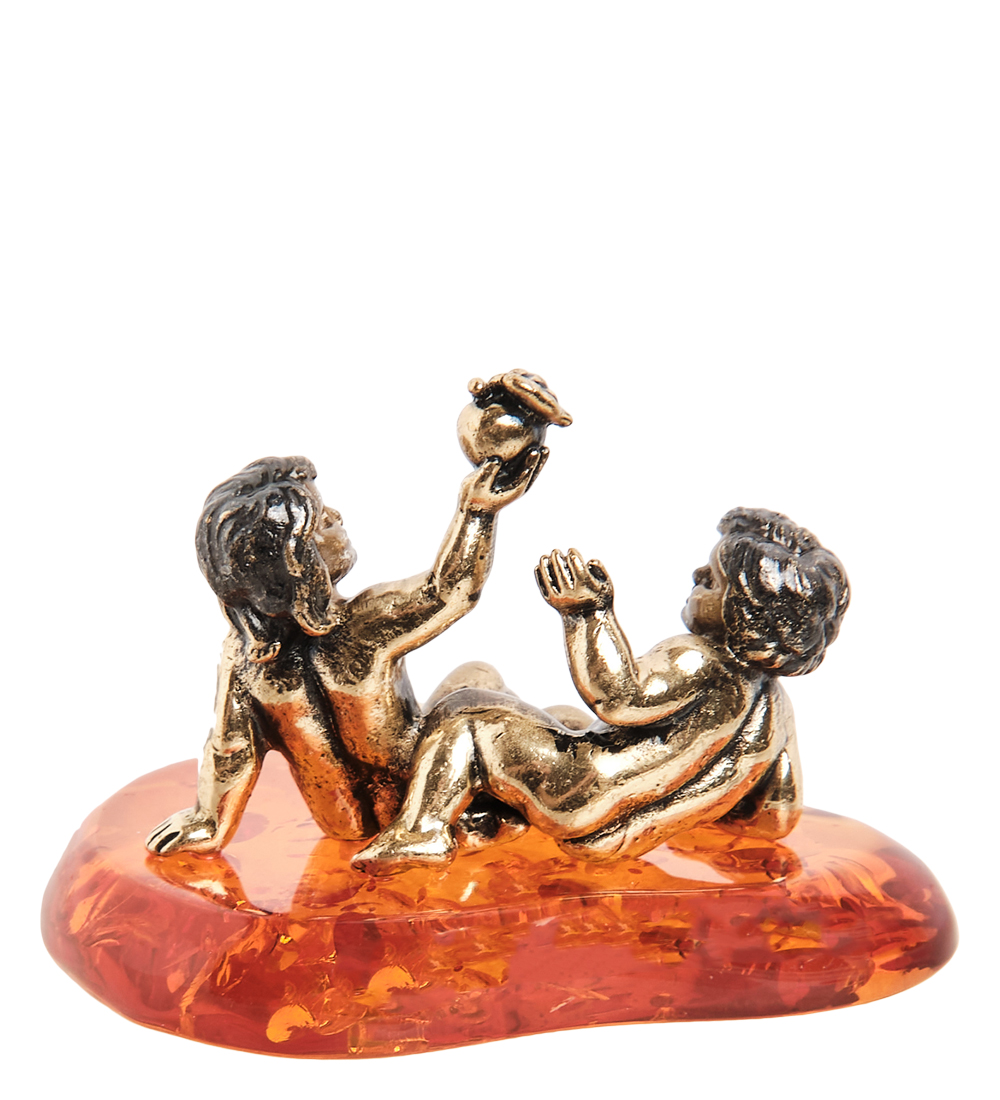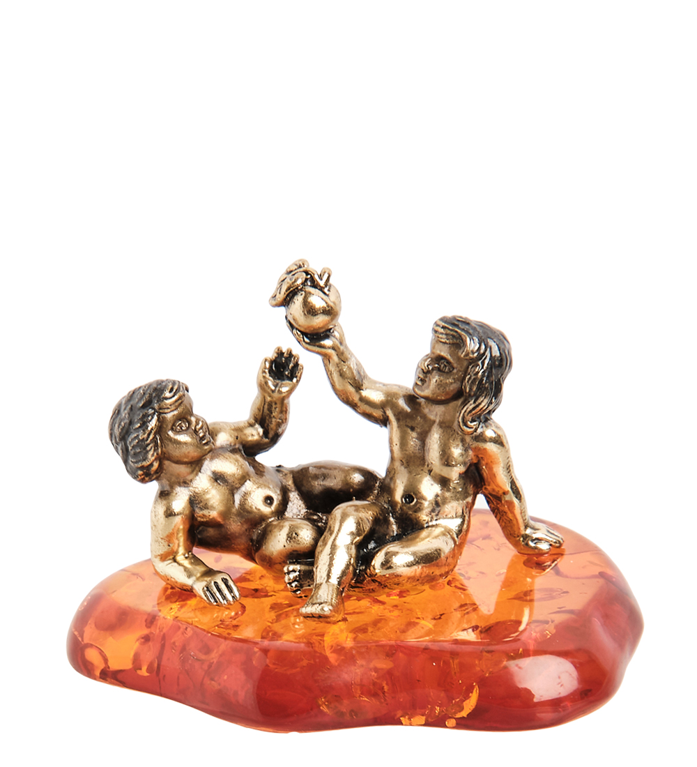 Am- 986 фигурка знак зодиака-близнецы (латунь, янтарь)