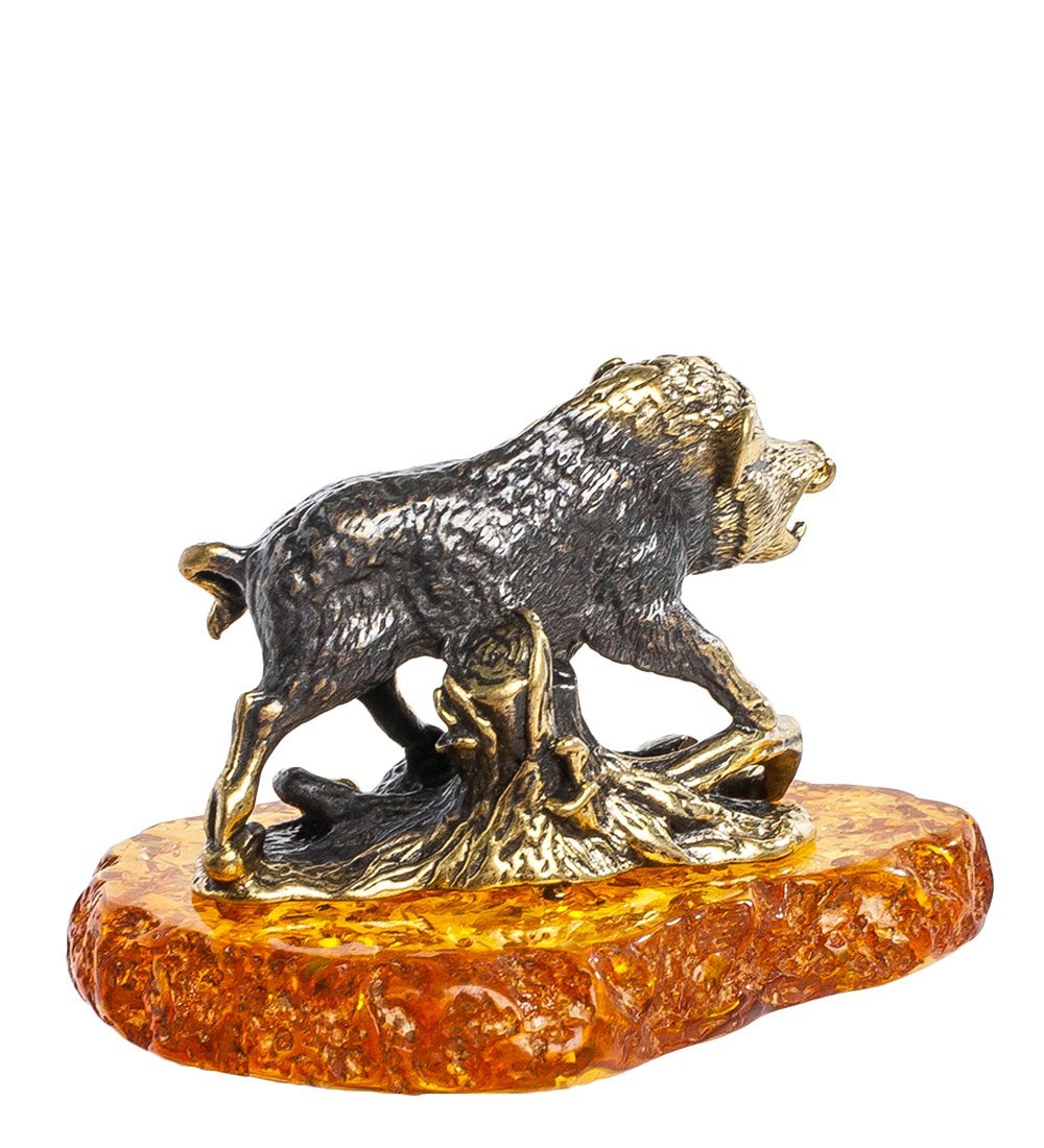 Am- 997 фигурка кабан секач (латунь, янтарь)