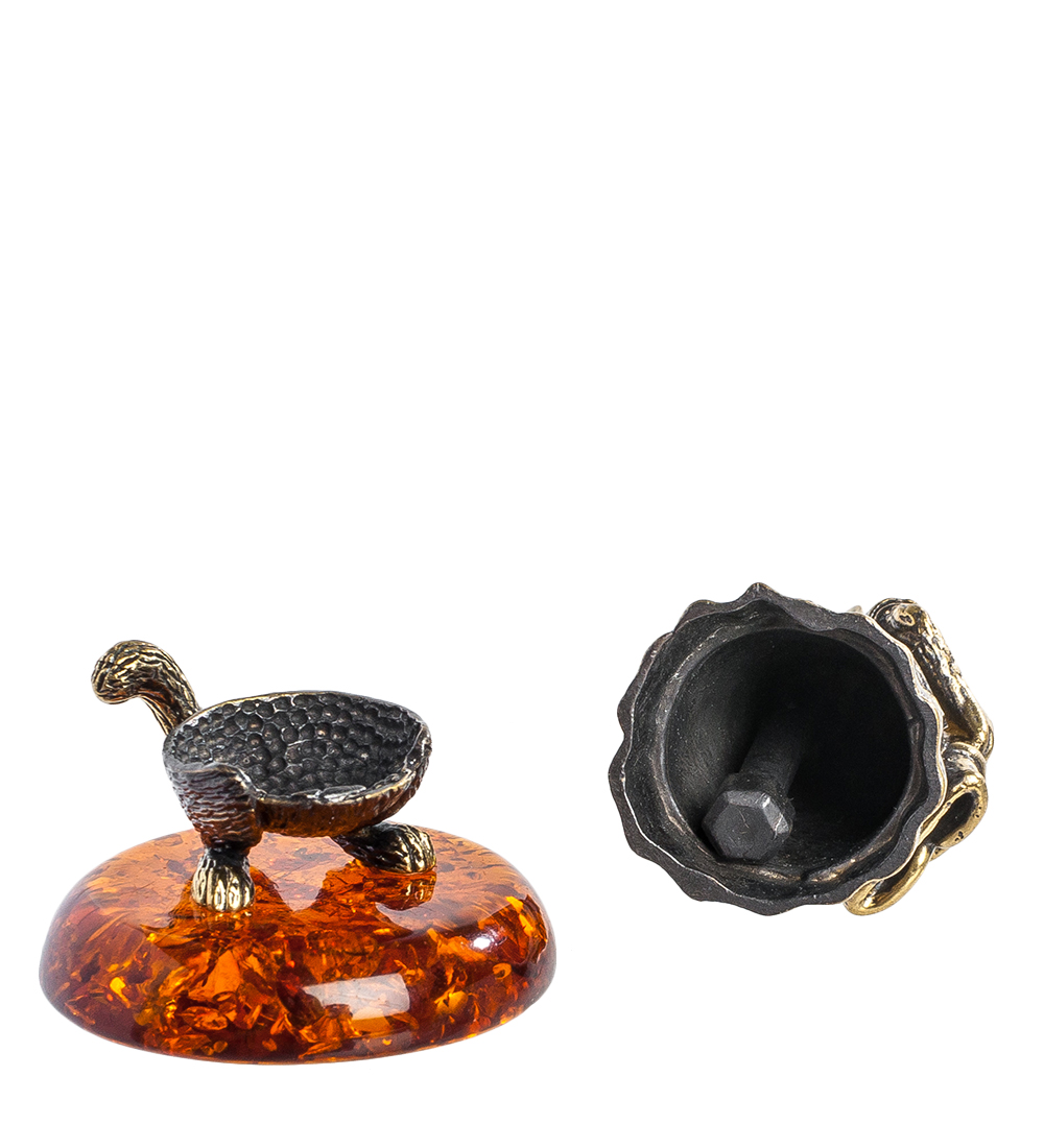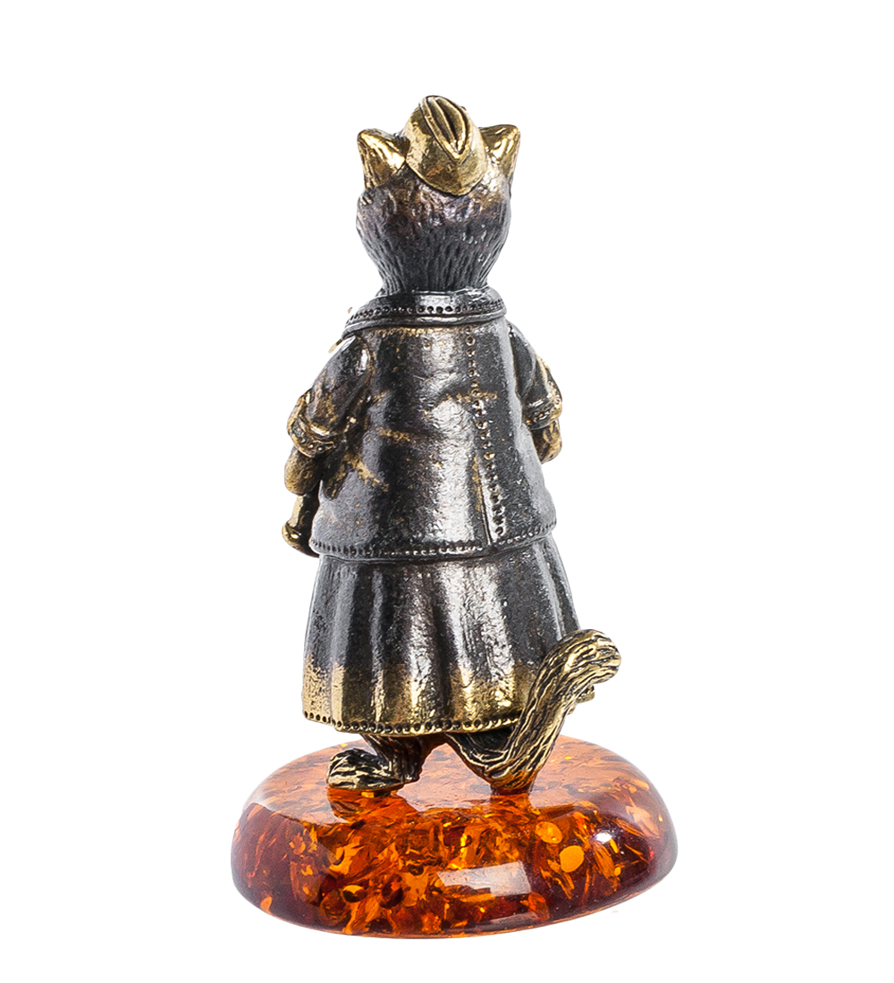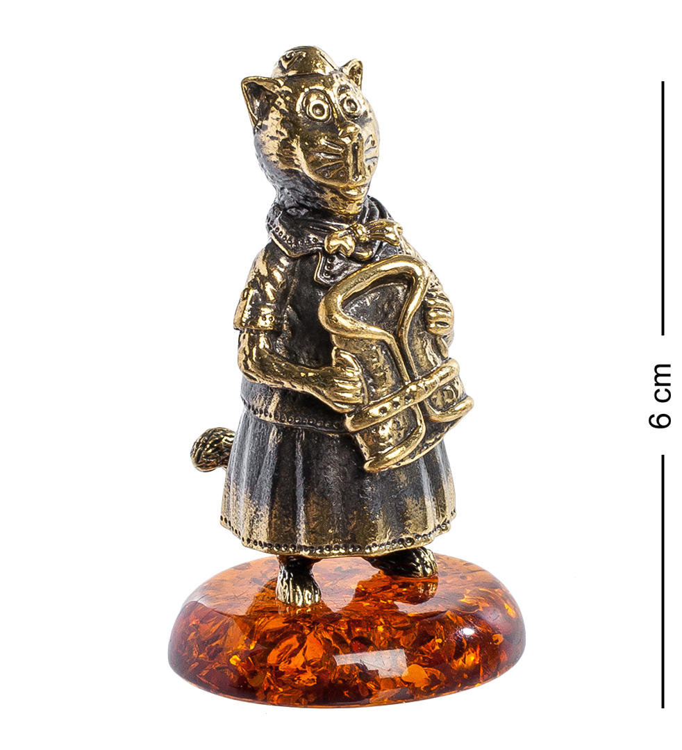 Am-1012 фигурка колокольчик-кошка стюардесса (латунь, янтарь)