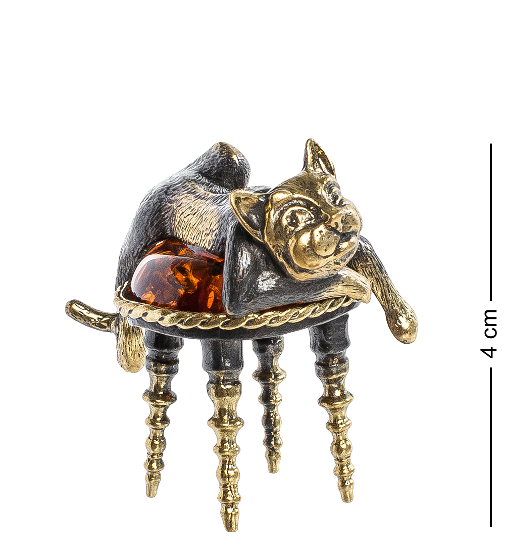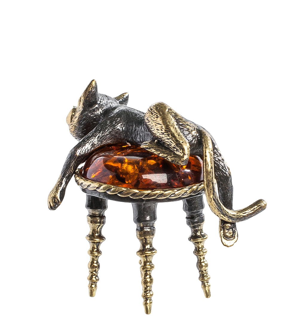 Am-1032 фигурка кот на пуфике (латунь, янтарь)