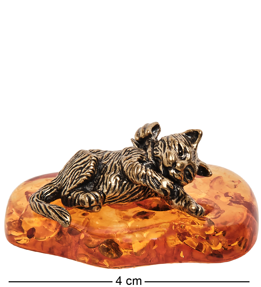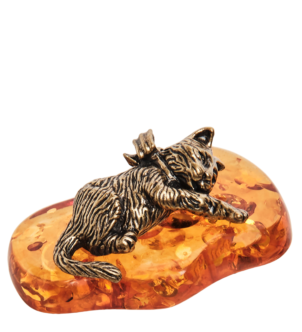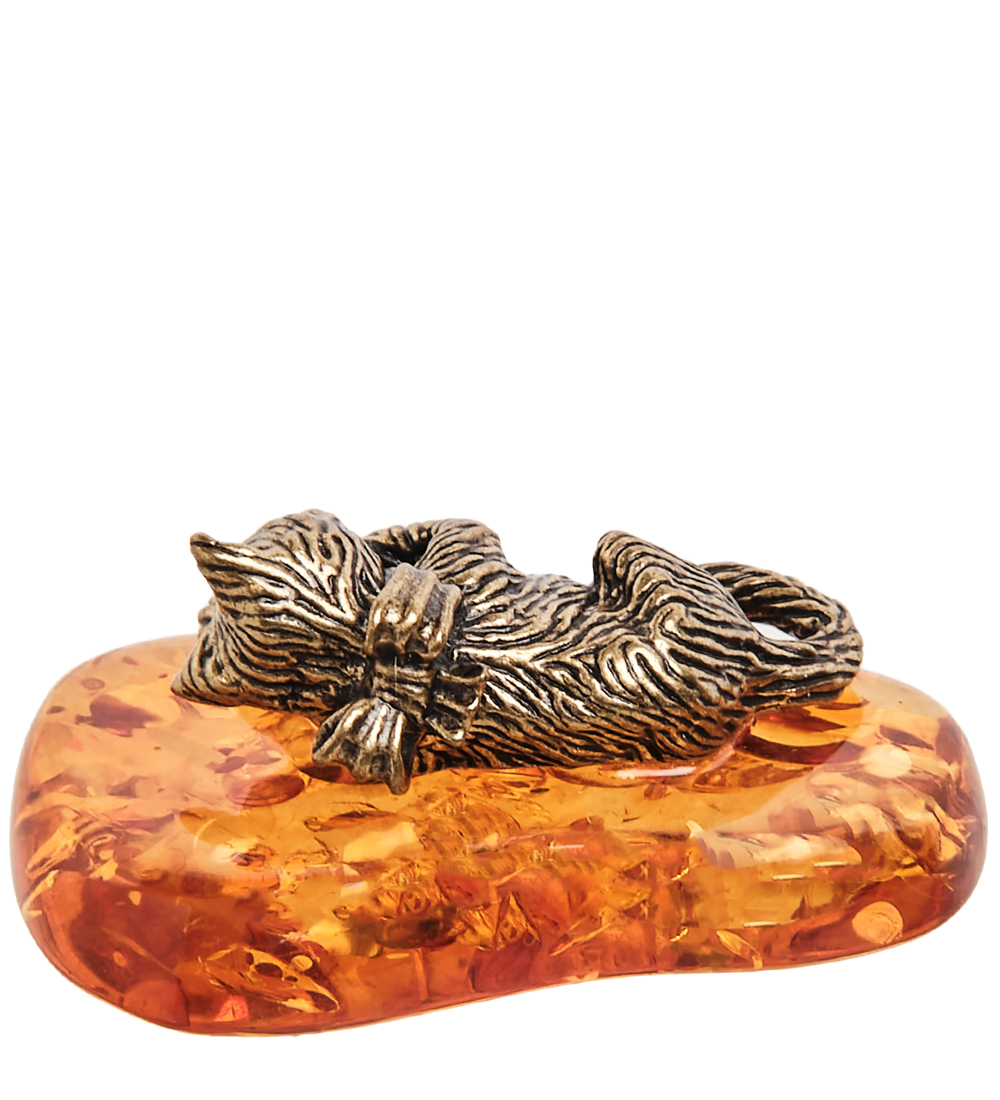 Am-1037 фигурка кот с любовью (латунь, янтарь)