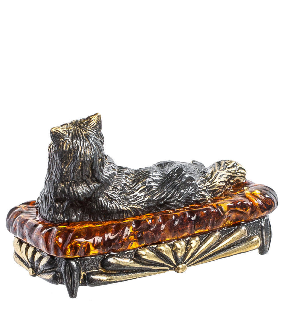 Am-1042 фигурка кот степка на пуфике (латунь, янтарь)