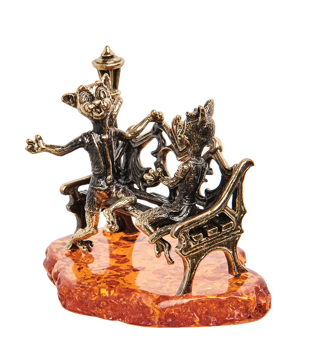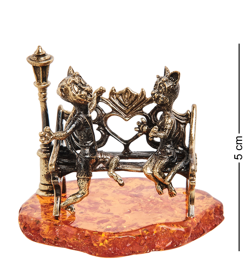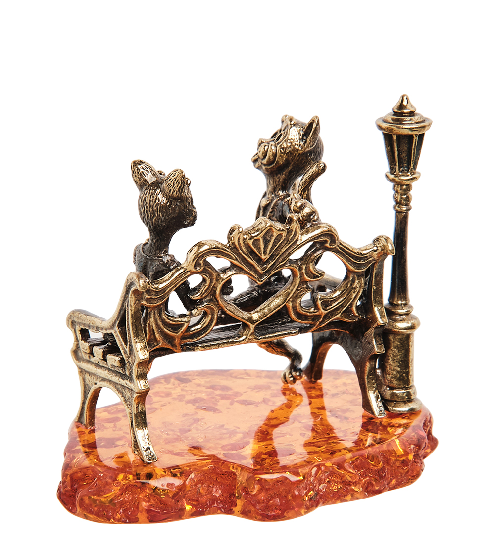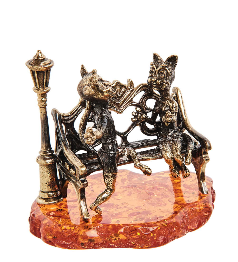 Am-1056 фигурка коты признание в любви (латунь, янтарь)