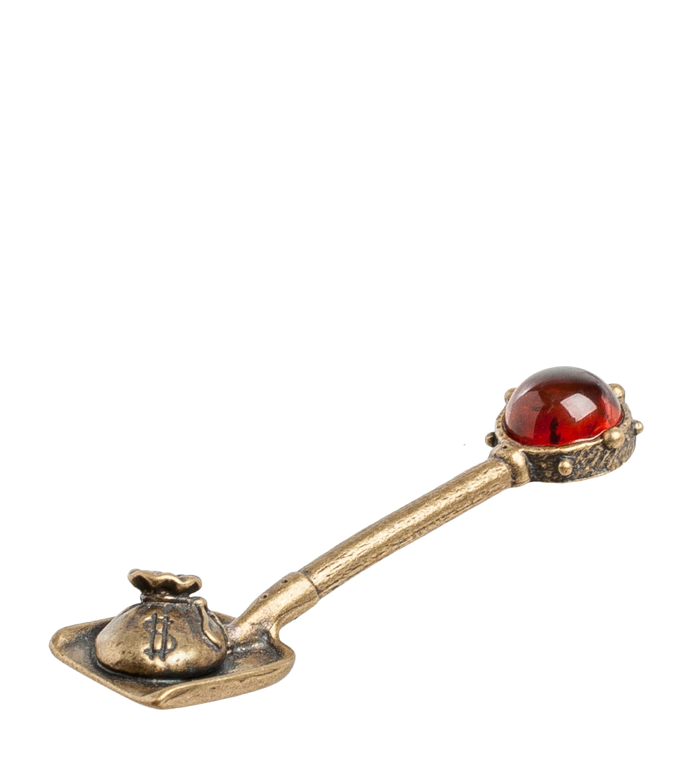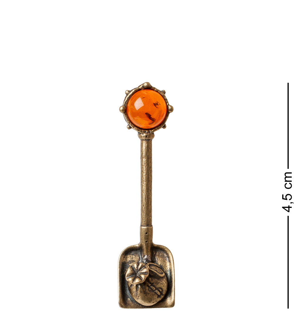Am-1058 фигурка-кошельковая лопата для денег с мешком (латунь, янтарь)