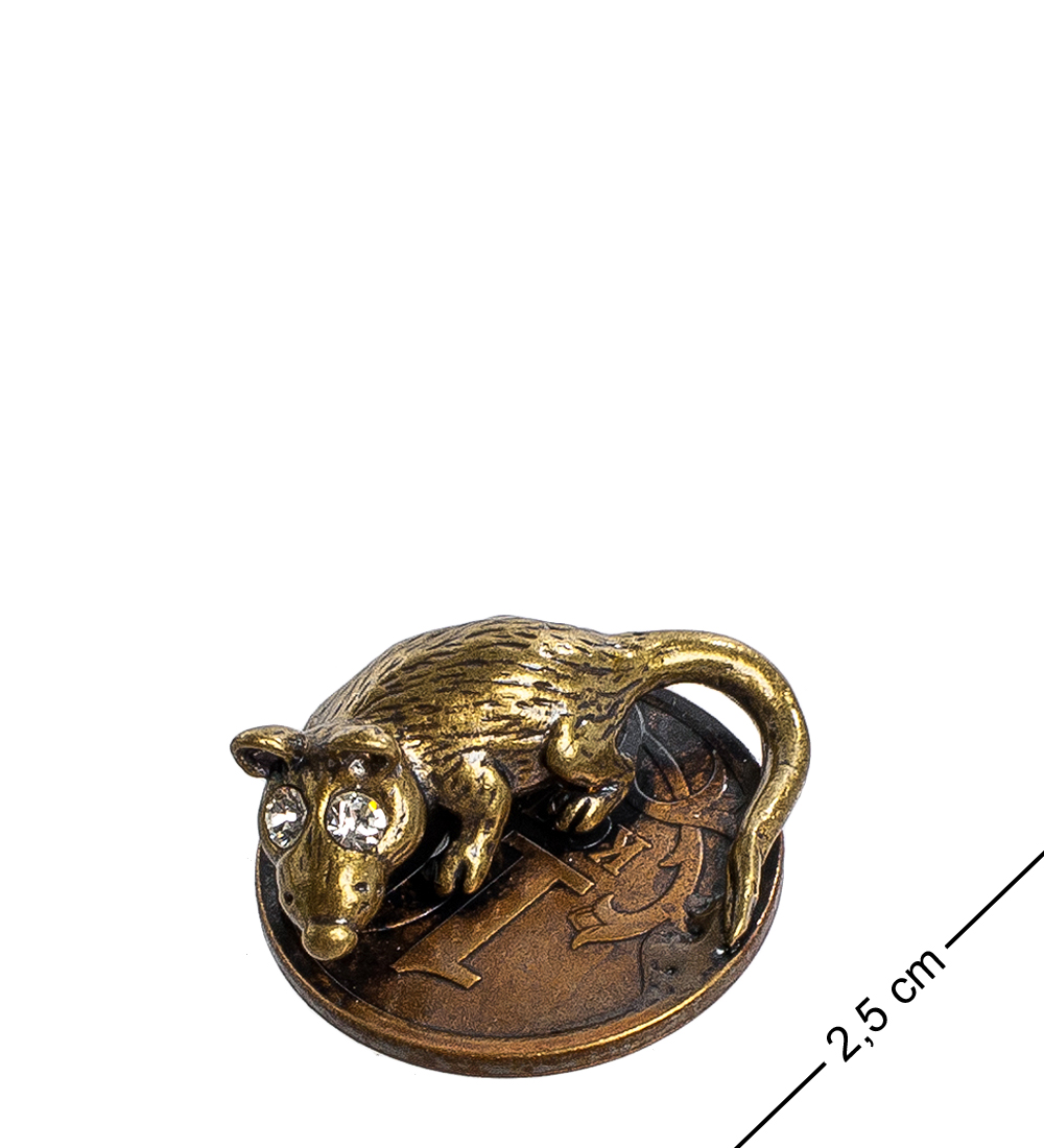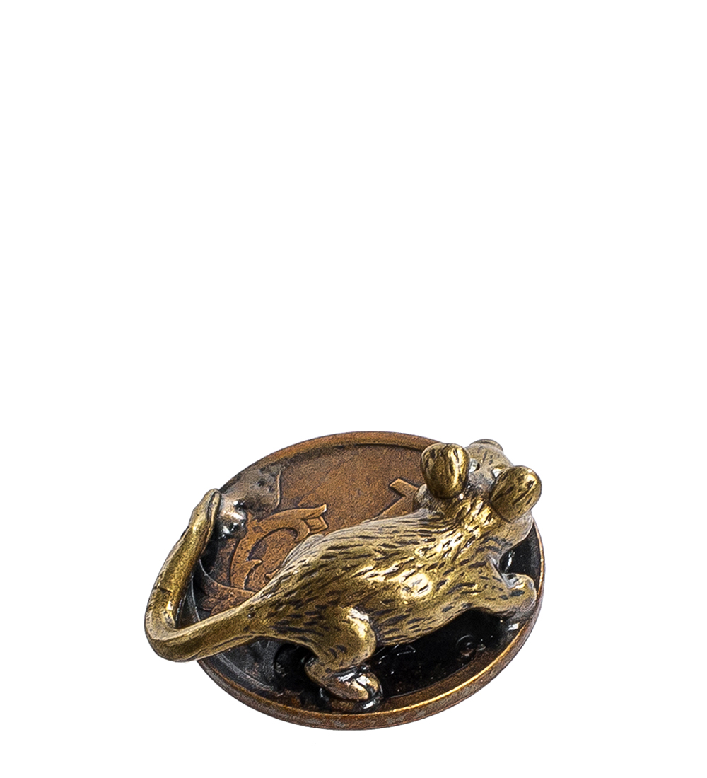 Am-1065 фигурка-кошельковая мышь-хранительница на монетке (латунь, янтарь)
