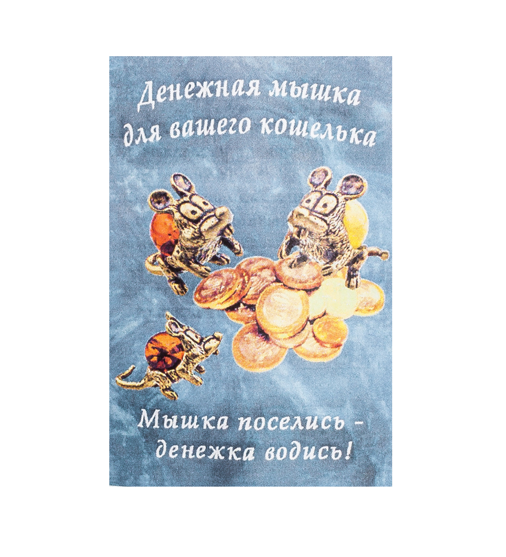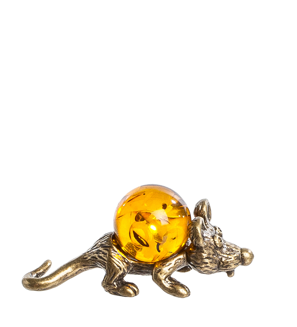 Am-1066 фигурка-кошельковая мышь-зубастик (латунь, янтарь)