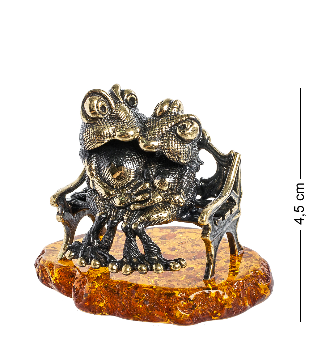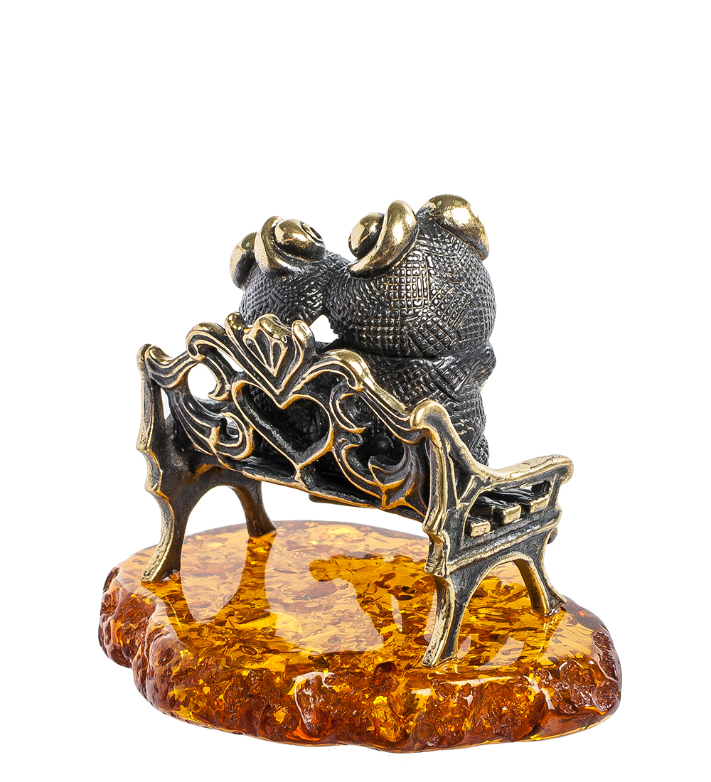 Am-1093 фигурка лягушки влюбленные (латунь, янтарь)