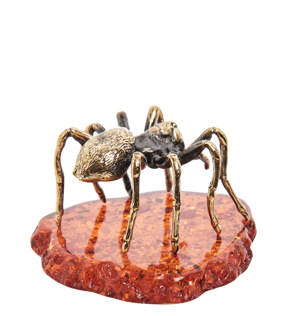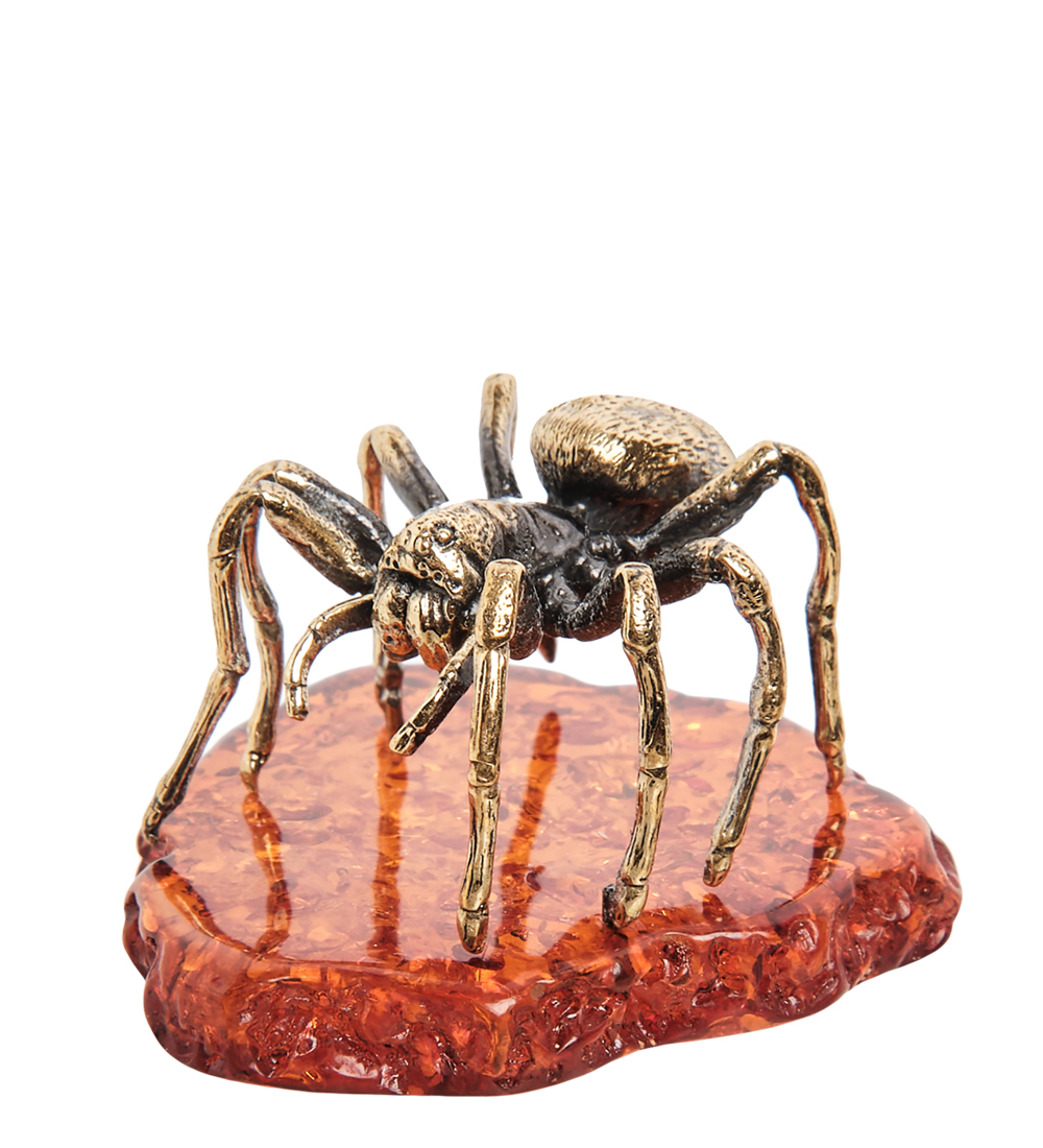 Am-1160 фигурка паук- хелицер (латунь, янтарь)