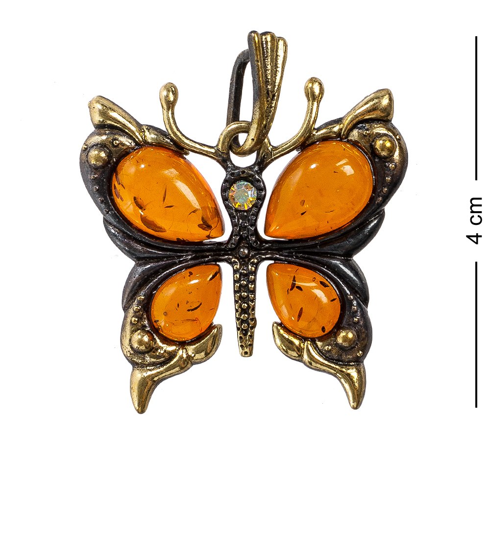 Am-1166 подвеска бабочка со стразами (латунь, янтарь)