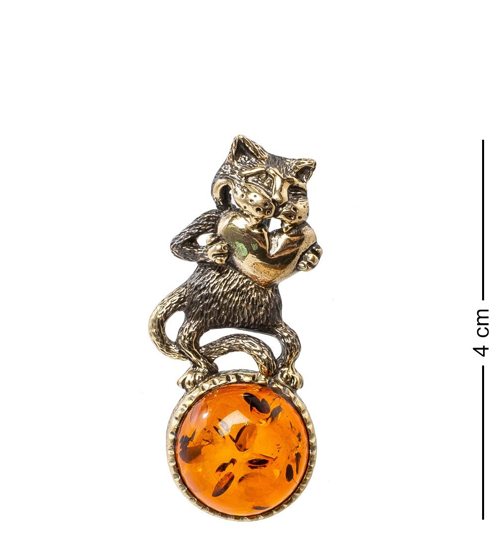 Am-1195 подвеска кот с сердцем (латунь, янтарь)