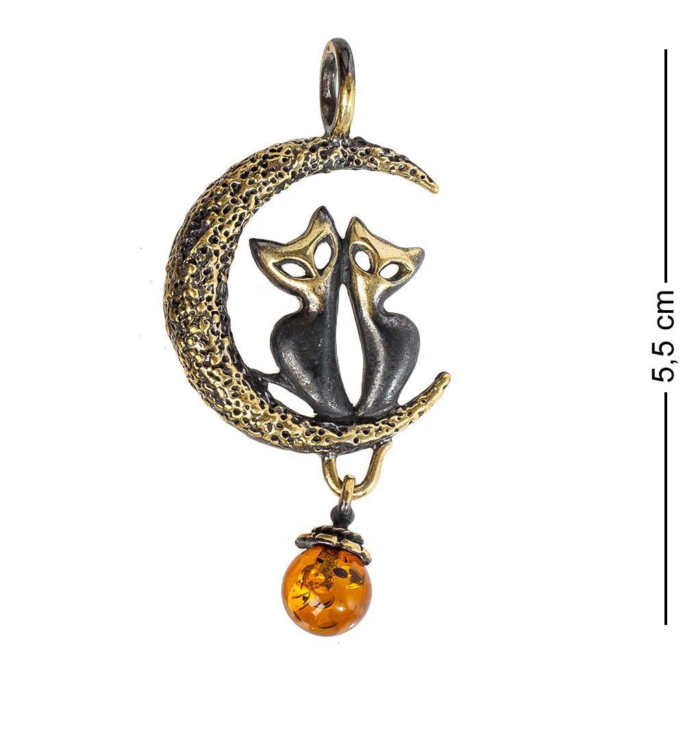 Am-1198 подвеска коты на луне (латунь, янтарь)