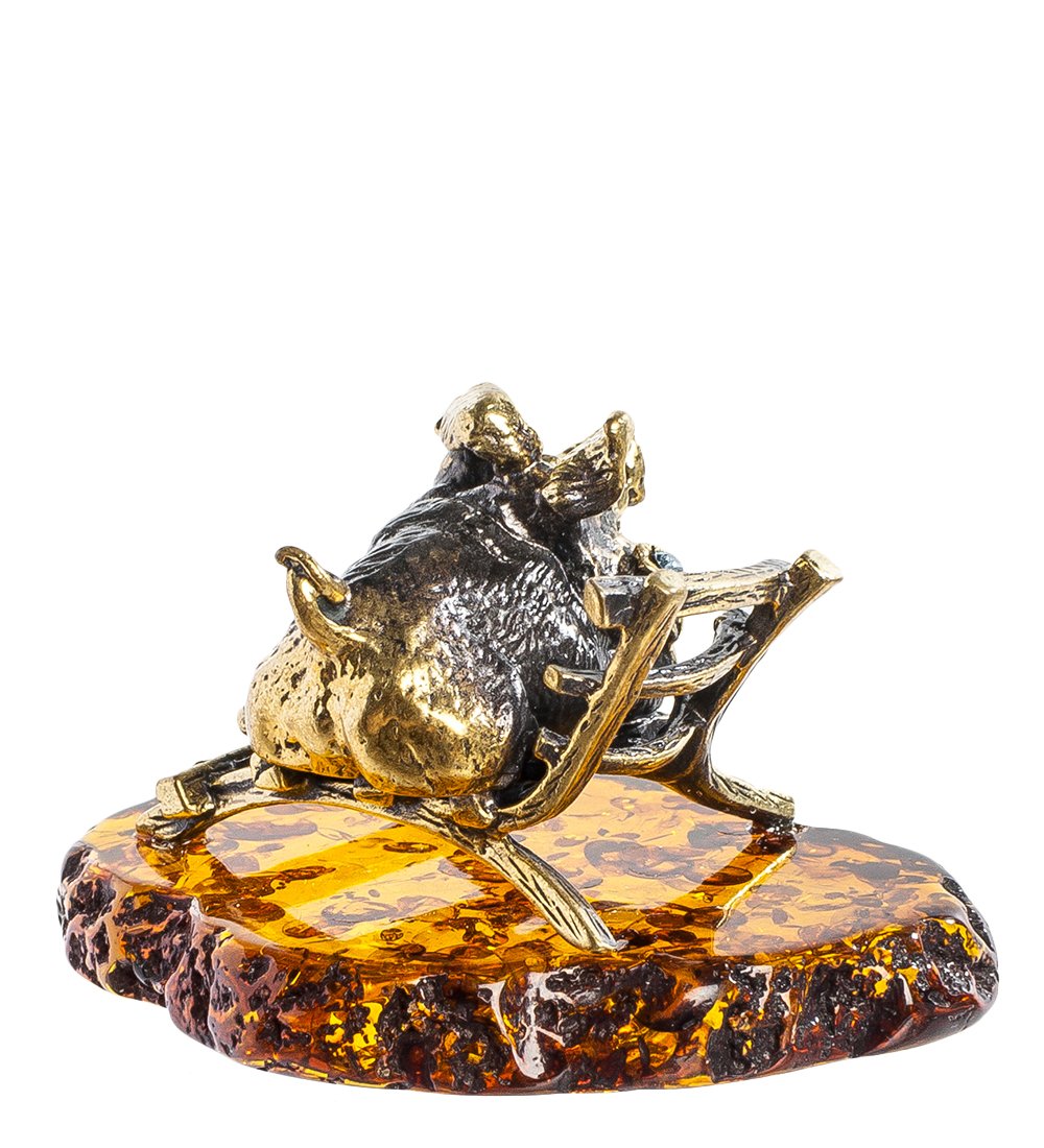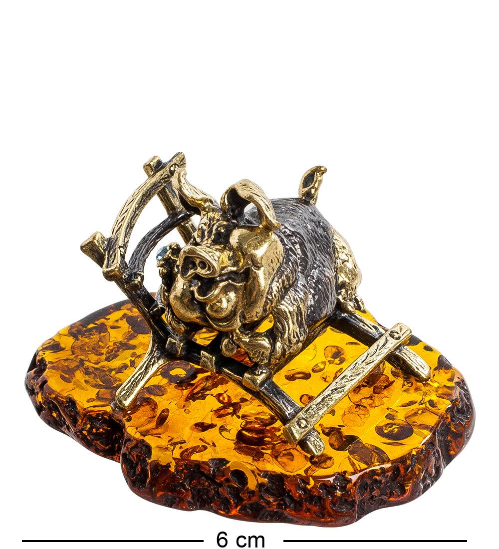 Am-1234 фигурка хрюша на кушетке (латунь, янтарь)