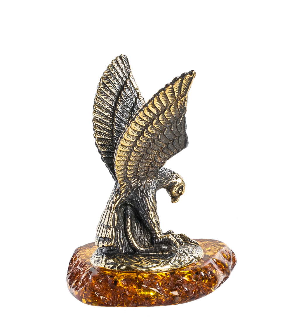 Am-1241 фигурка орел со змеёй (латунь, янтарь)