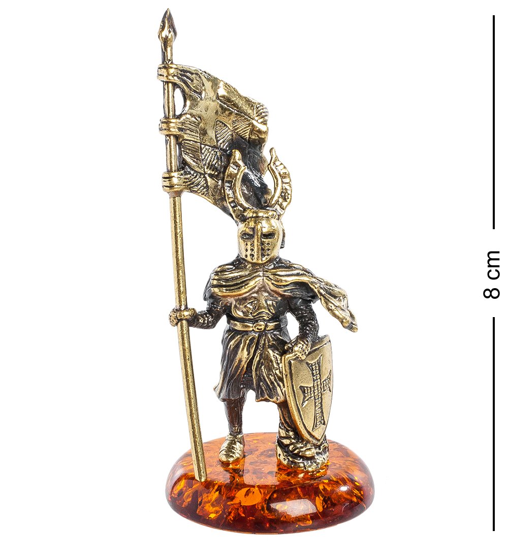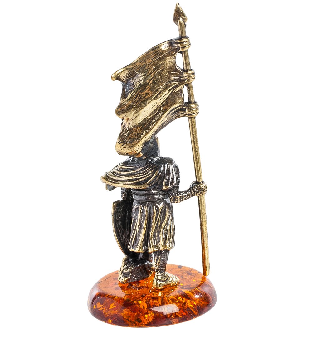 Am-1270 фигурка рыцарь знаменосец (латунь, янтарь)