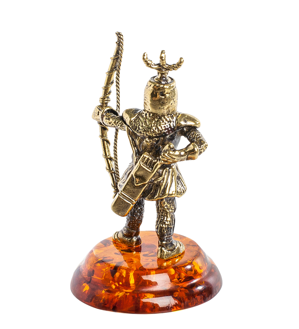 Am-1273 фигурка рыцарь лучник (латунь, янтарь)