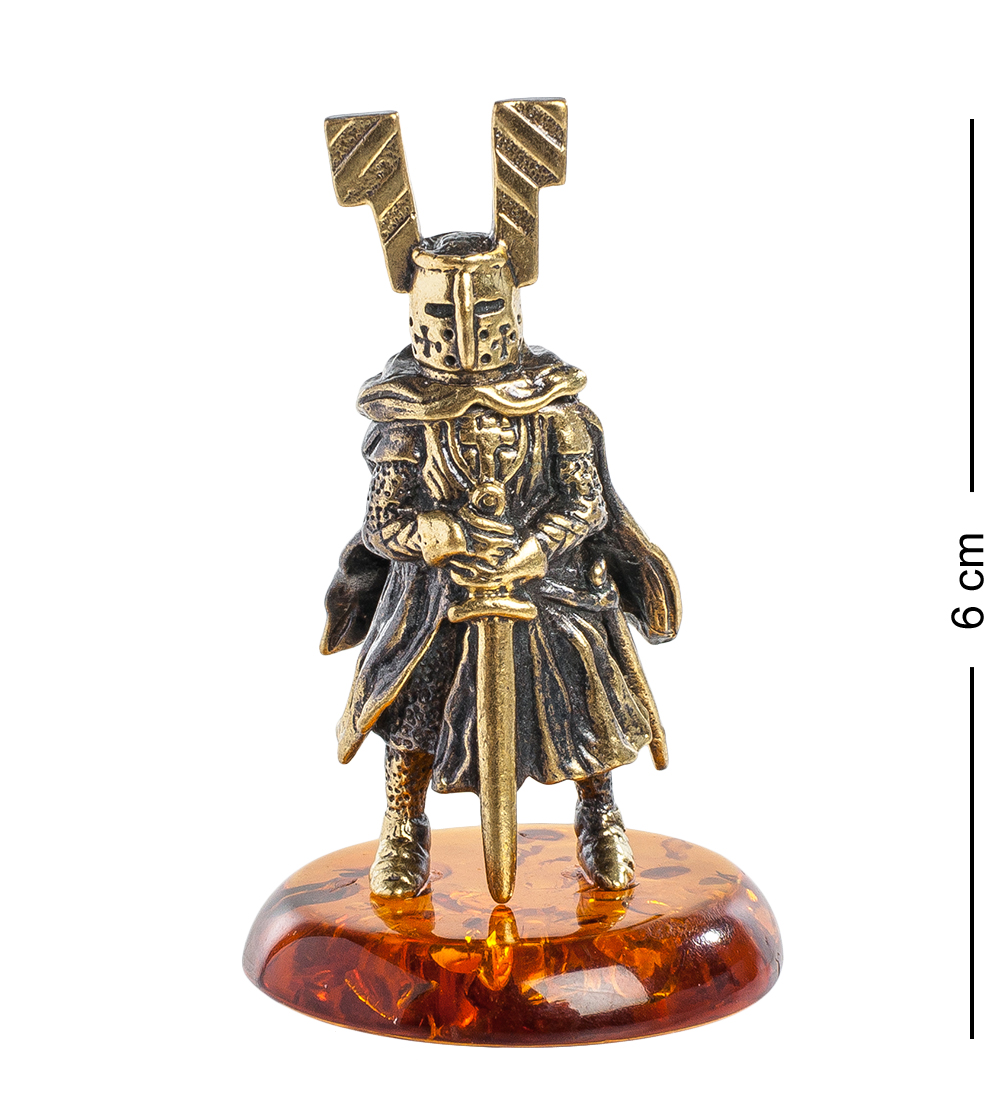 Am-1278 фигурка рыцарь с мечом (латунь, янтарь)