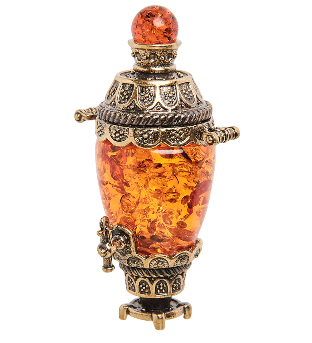 Am-1287 фигурка самовар царский (латунь, янтарь)