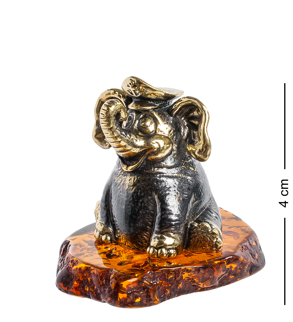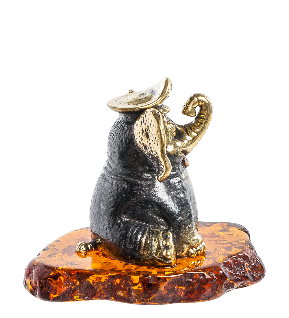 Am-1293 фигурка слон морячек (латунь, янтарь)