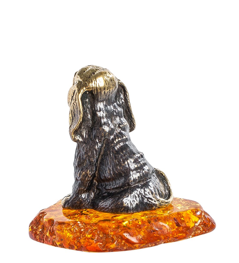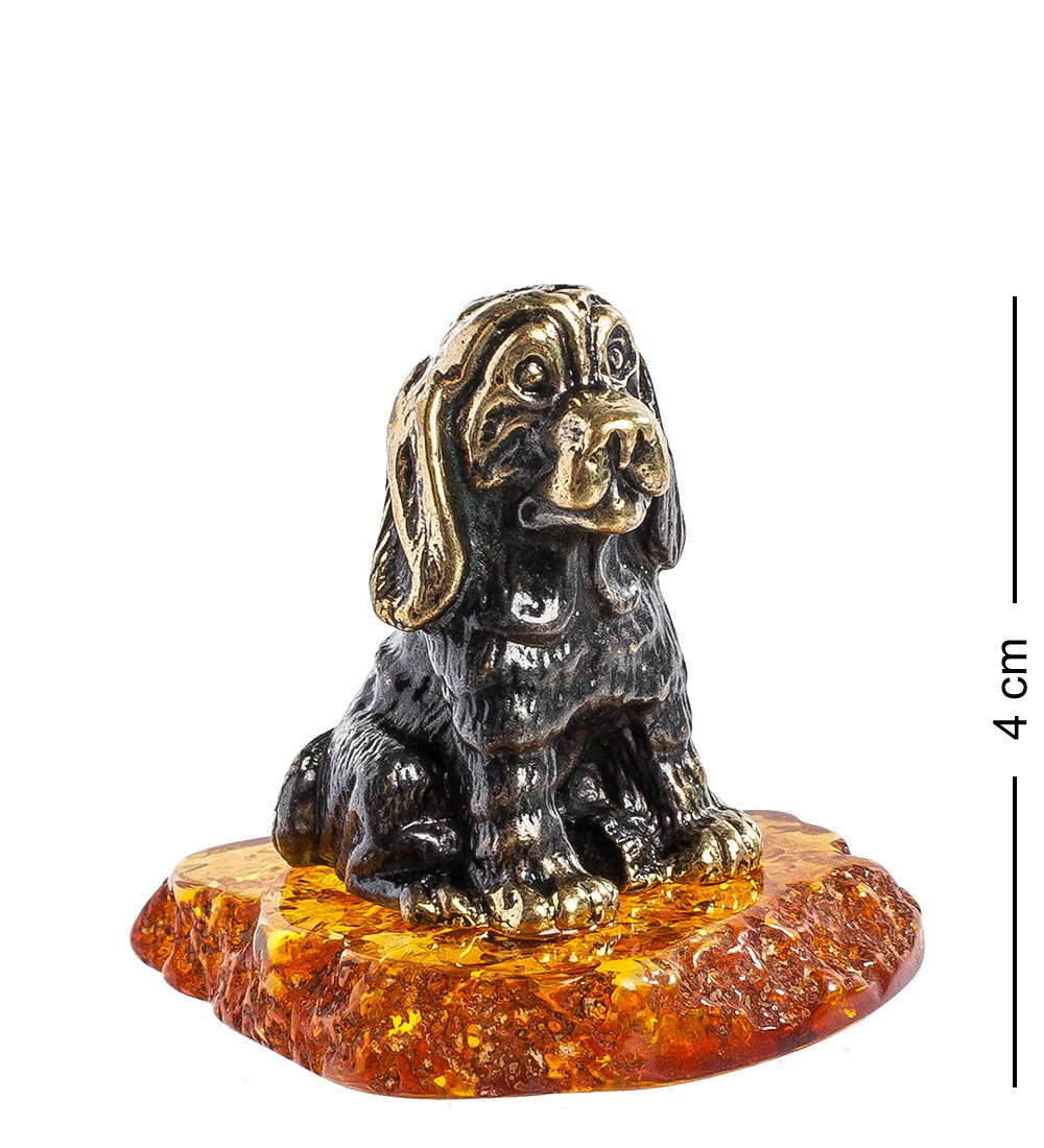 Am-1296 фигурка бигль на подставке (латунь, янтарь)
