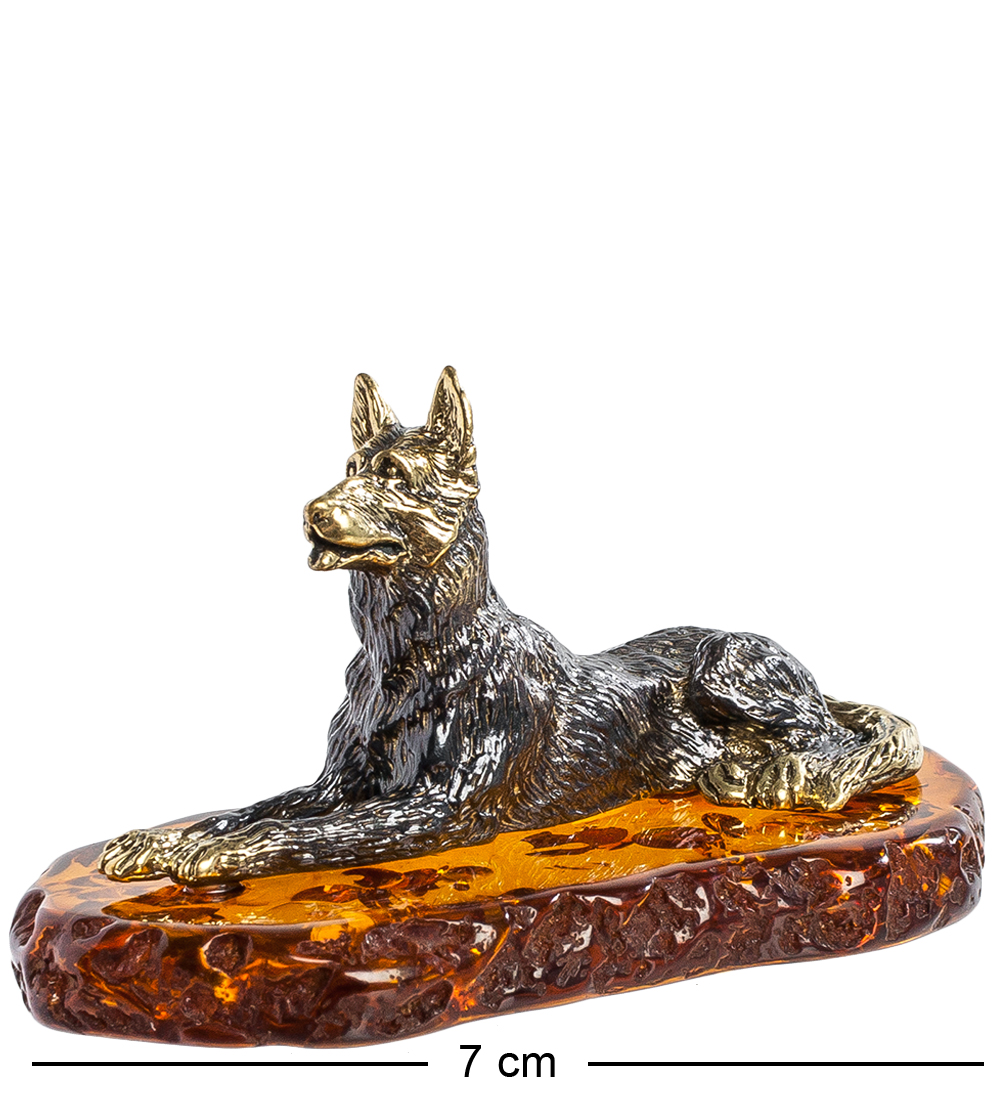 Am-1310 фигурка овчарка (латунь, янтарь)