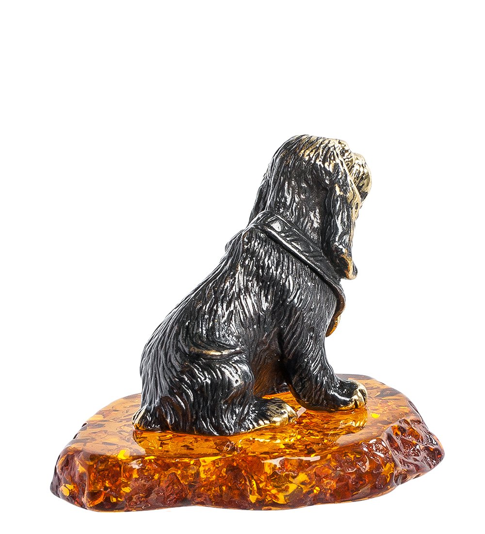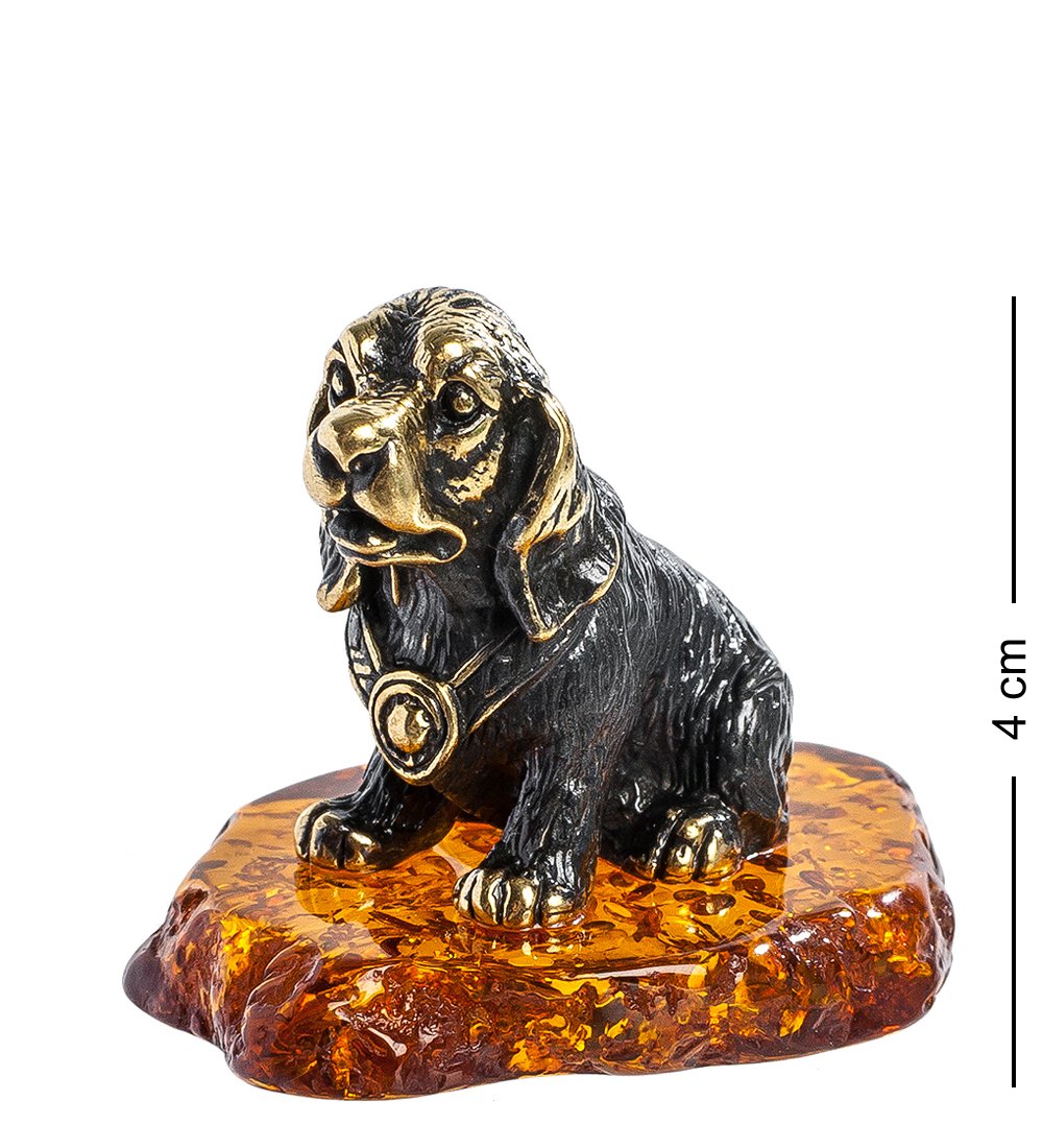 Am-1313 фигурка спаниель в ошейнике (латунь, янтарь)