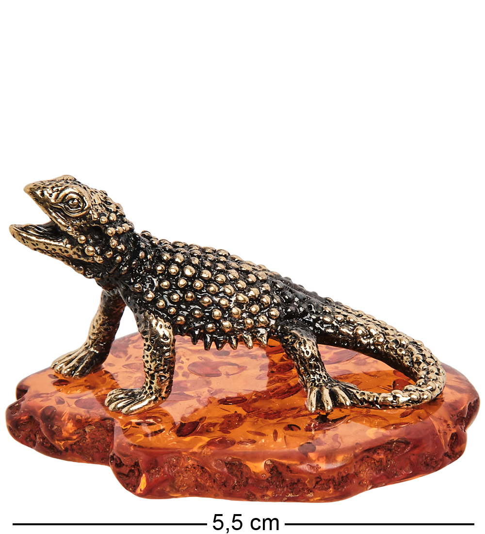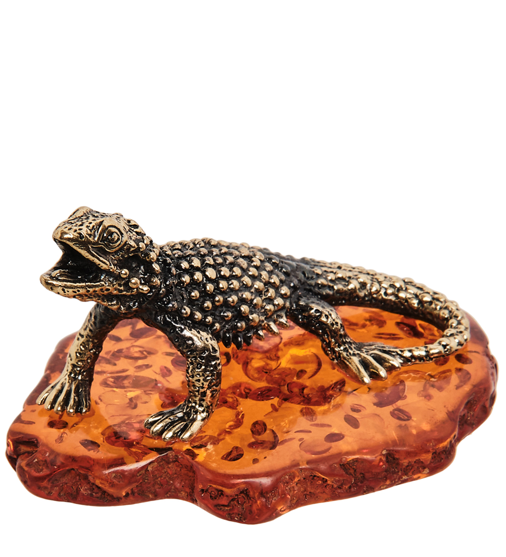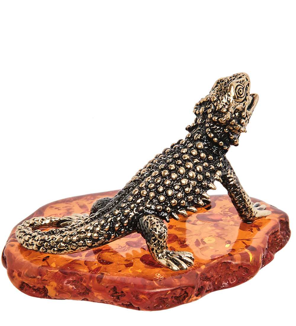 Am-1368 фигурка ящерица (латунь, янтарь)