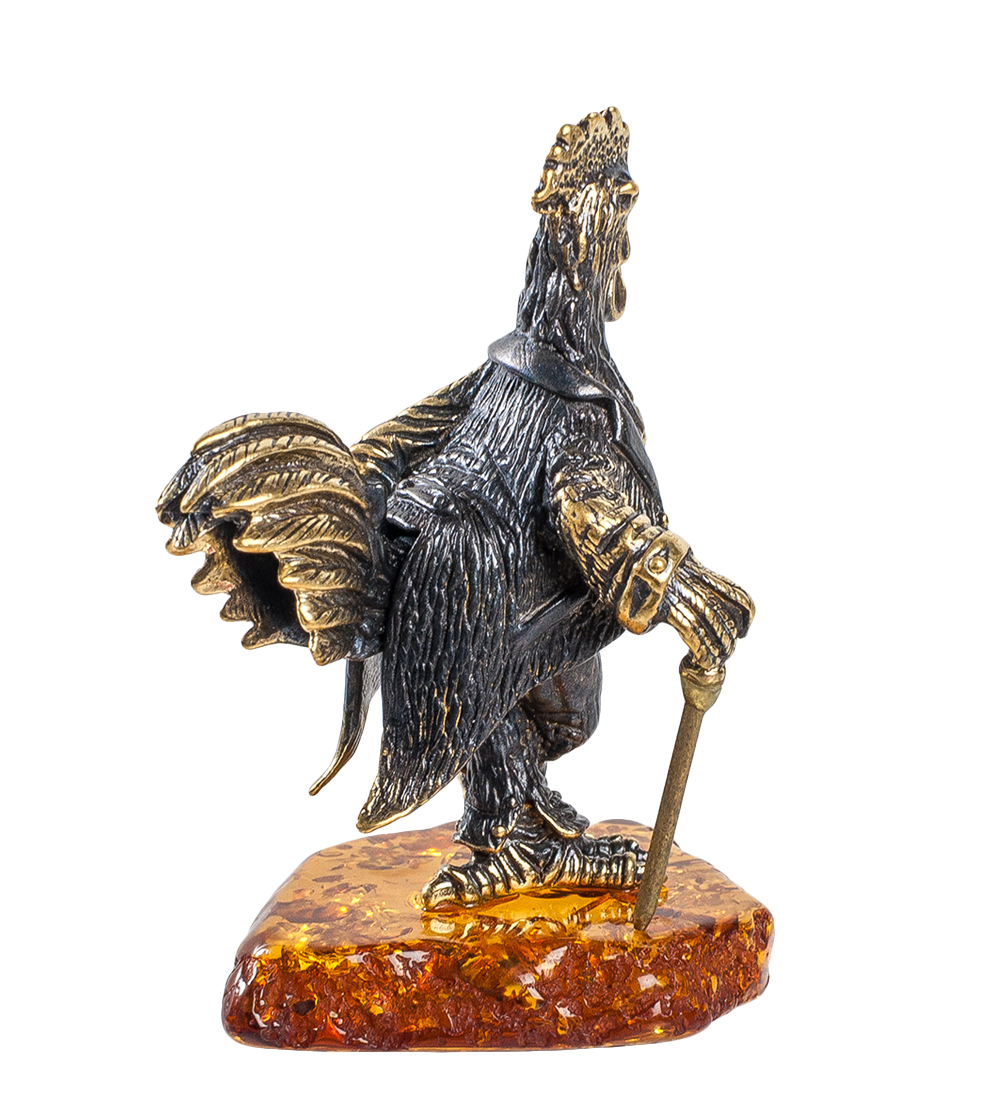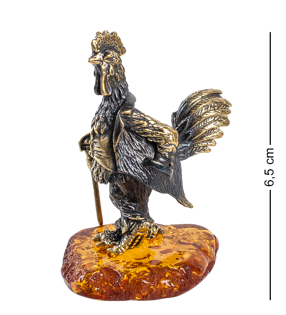Am-1374 фигурка петух с тростью (латунь, янтарь)