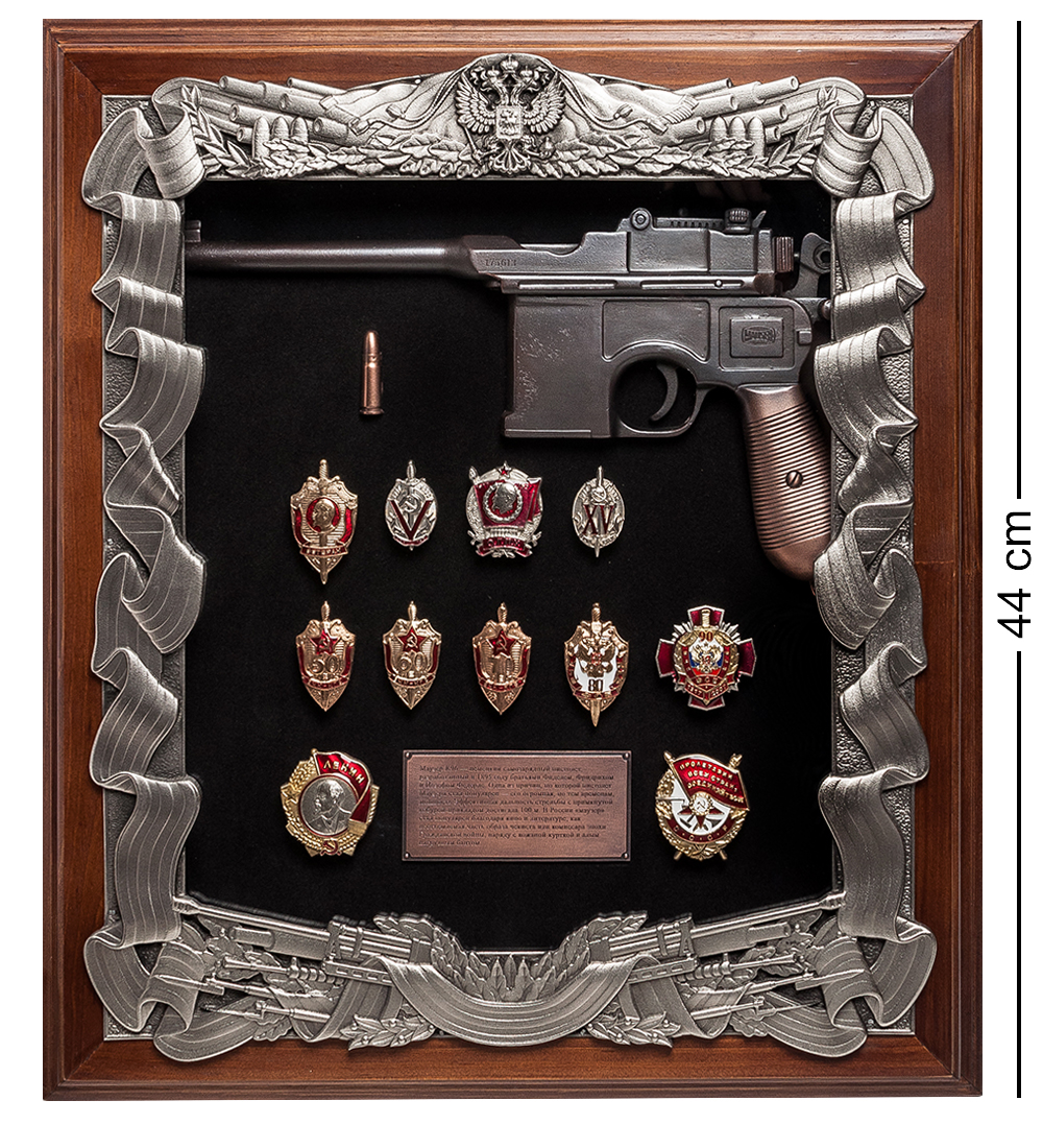 Пк-171 ключница маузер со знаками фсб. Параметры товара Материал: Медь, дерево, ювелирная эмаль, бархат, стекло Страна производства: Россия Страна бренда: Россия Размеры изделия Ширина: 40 см; Высота: 44 см; Толщина: 10 см; Вес: 3 кг. Размеры упаковки Длина: 45 см; Ширина: 41 см; Высота: 11 см; Вес: 4 кг.