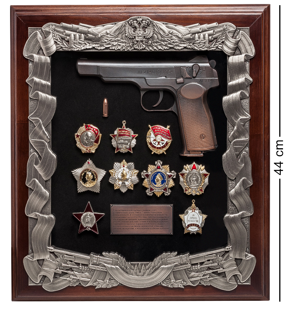 Пк-184 панно стечкин с наградами ссср. Параметры товара Материал: Медь, дерево, ювелирная эмаль, бархат, стекло Страна производства: Россия Страна бренда: Россия Размеры изделия Ширина: 40 см; Высота: 44 см; Толщина: 10 см; Вес: 3 кг. Размеры упаковки Длина: 45 см; Ширина: 41 см; Высота: 11 см; Вес: 4 кг.