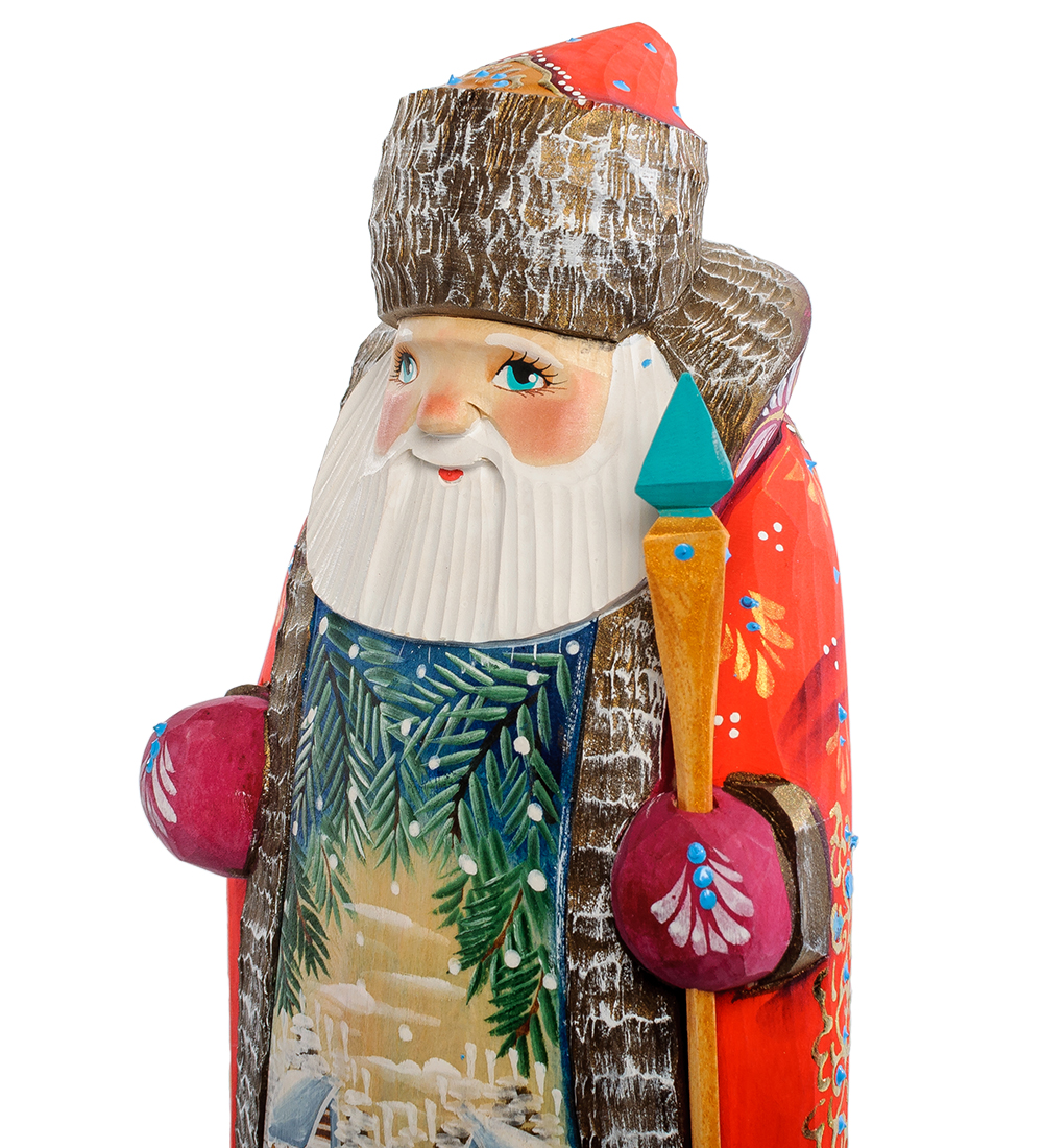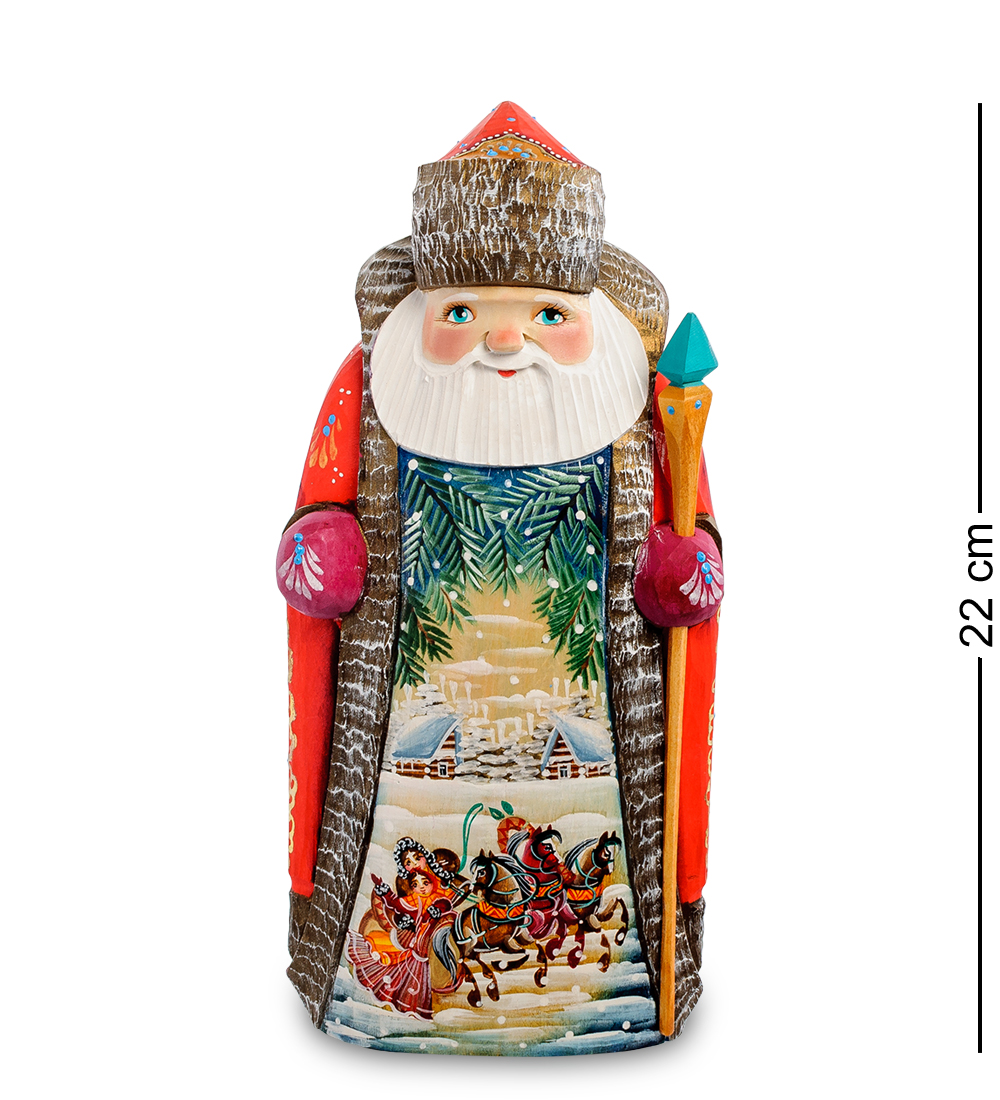 Рд-54 фигурка дед мороз с посохом (резной) 21см. Материал: дерево, акриловая краска Страна производства: Россия Размеры изделия: Размеры упаковки: