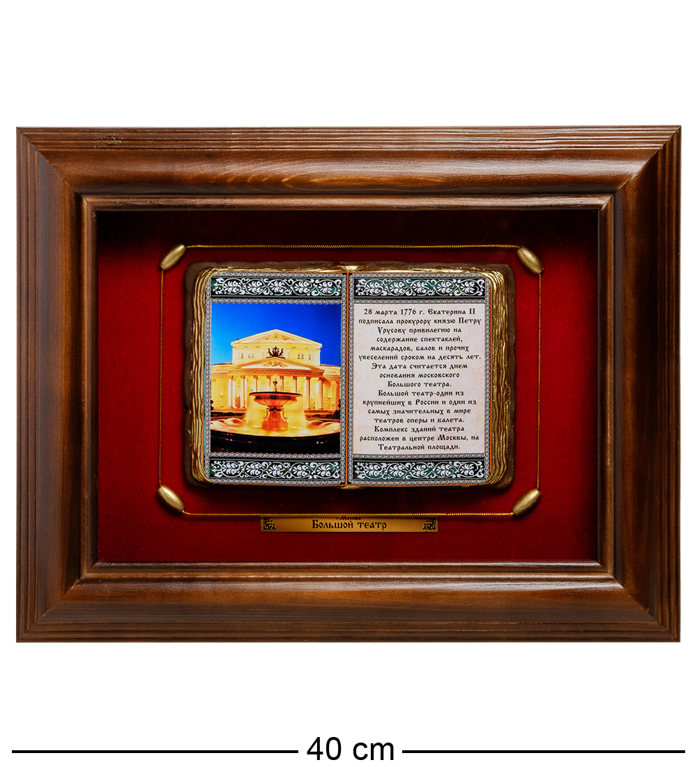 Пк-577 панно москва большой театр 40х31. Параметры товара Материал: Дерево, пластик, флок, стекло Страна производства: Россия Страна бренда: Россия Размеры изделия Ширина: 40 см; Высота: 31 см; Толщина: 5 см; Вес: 1.7 кг. Размеры упаковки Длина: 42 см; Ширина: 32 см; Высота: 5.5 см; Вес: 2 кг.