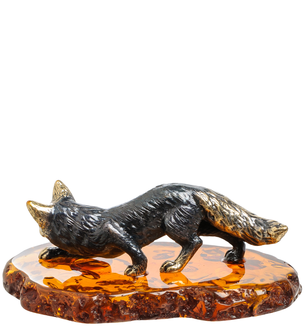 Am-1398 фигурка лиса на охоте (латунь, янтарь).