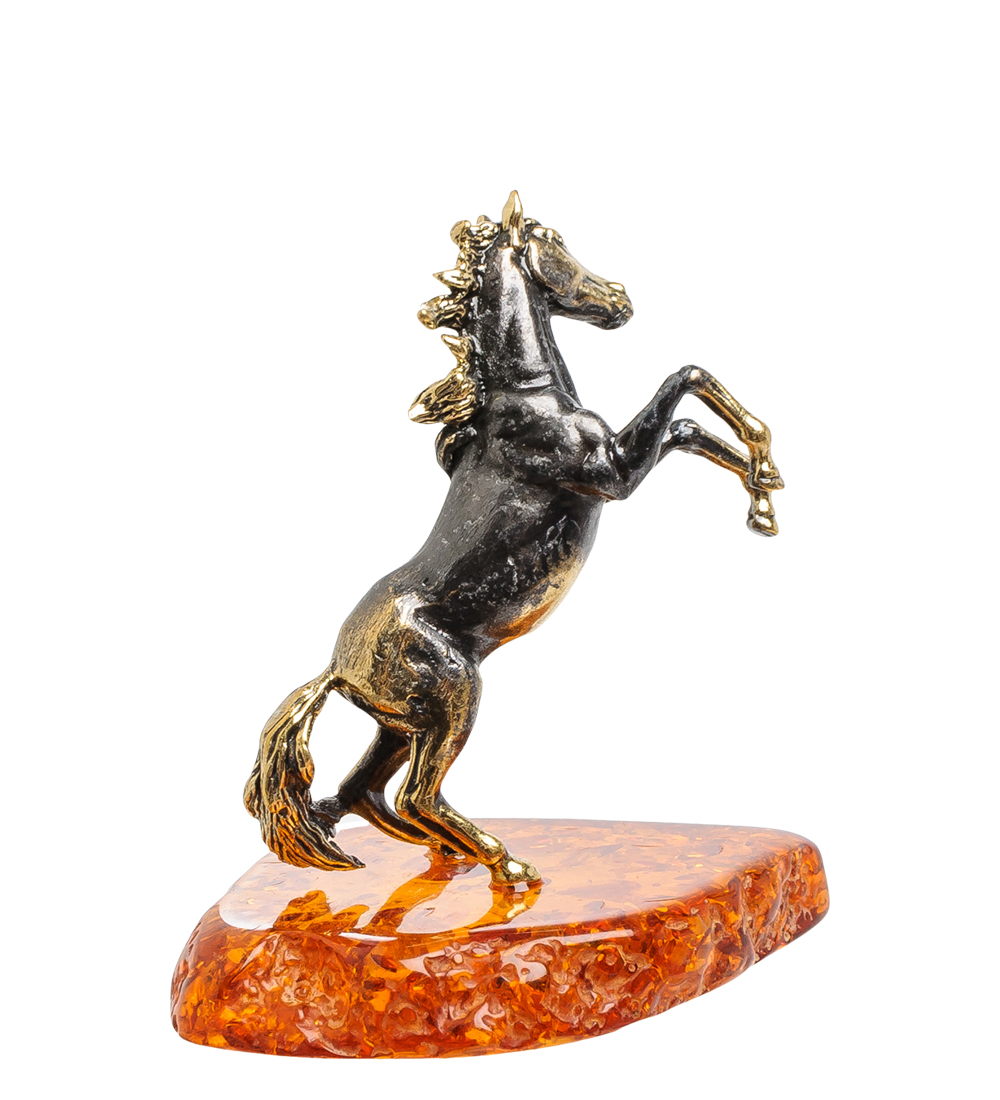 Am-1400 фигурка лошадь спирит (латунь, янтарь)