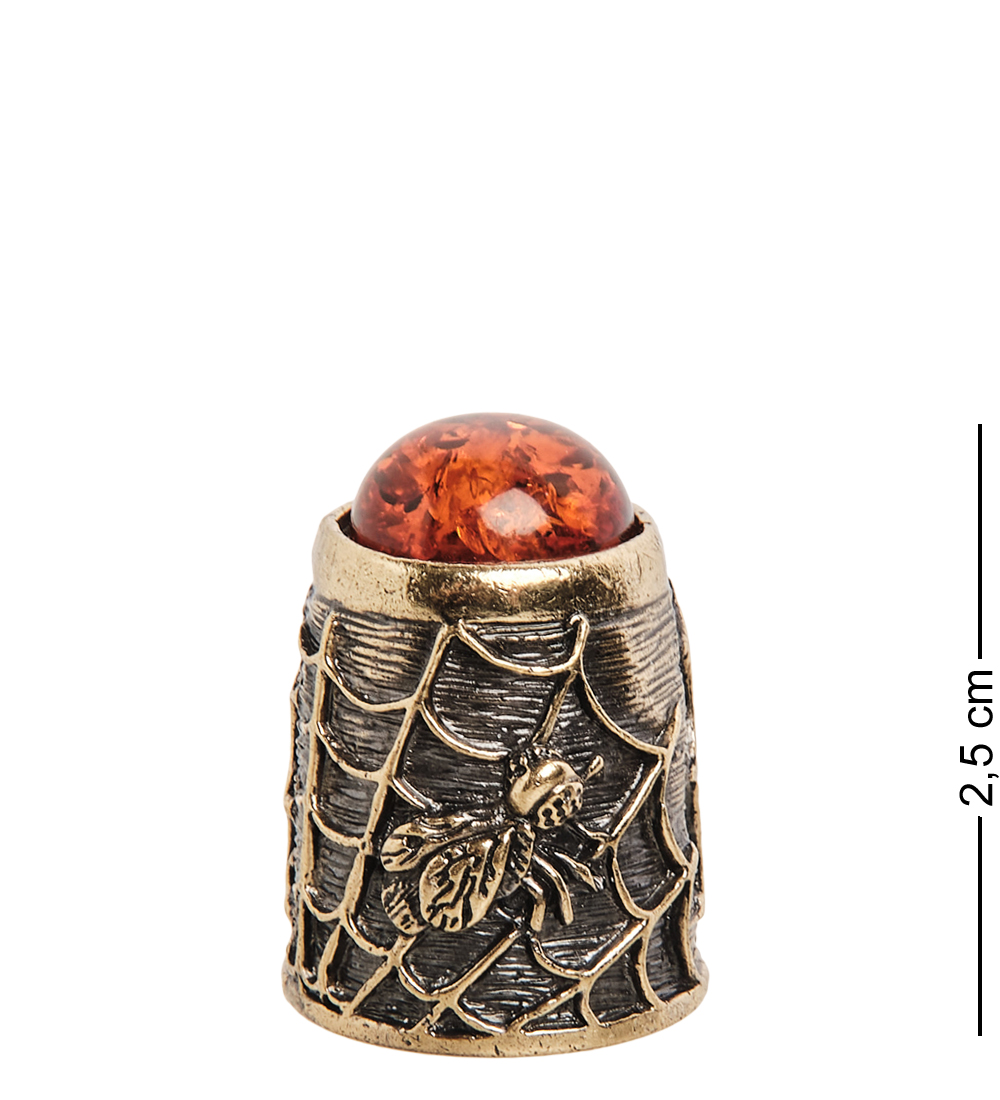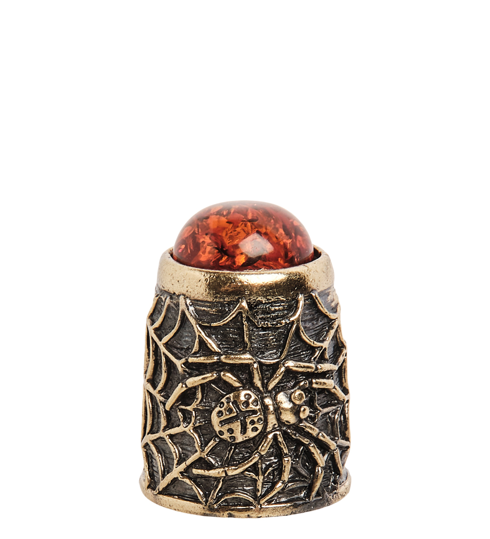 Am-1438 наперсток паук и муха (латунь, янтарь)