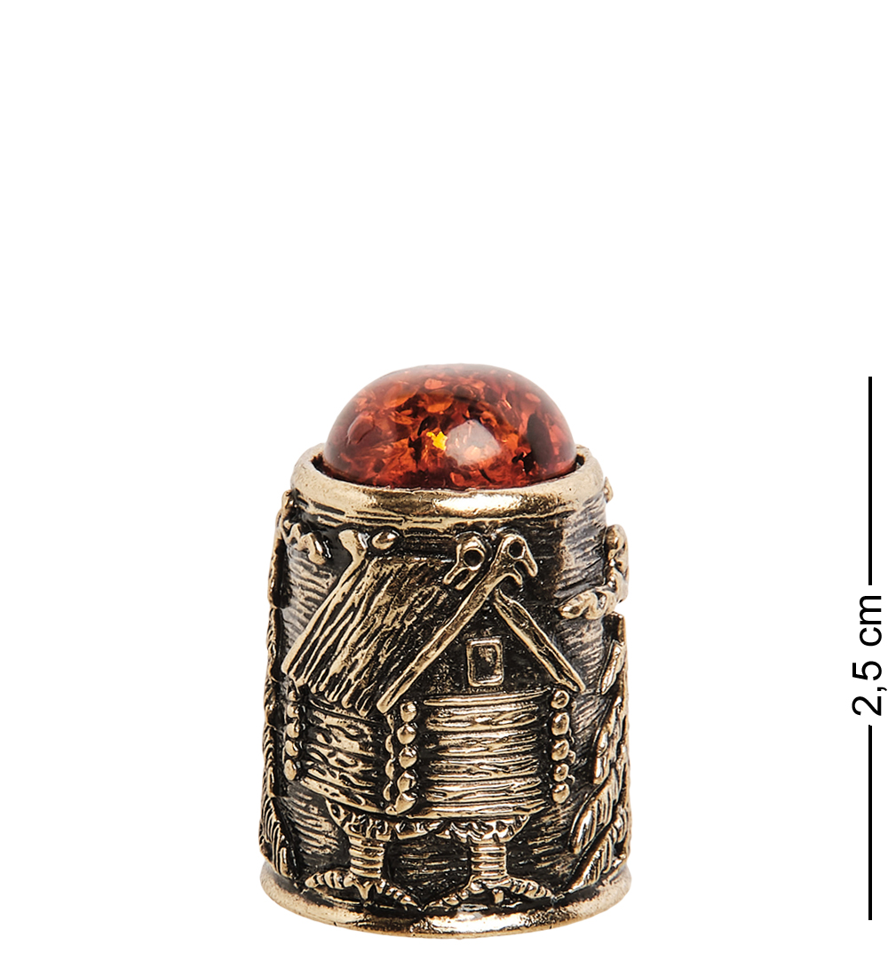 Am-1446 наперсток избушка бабы яги (латунь, янтарь)