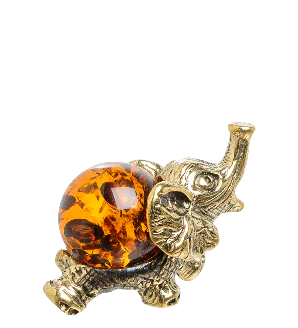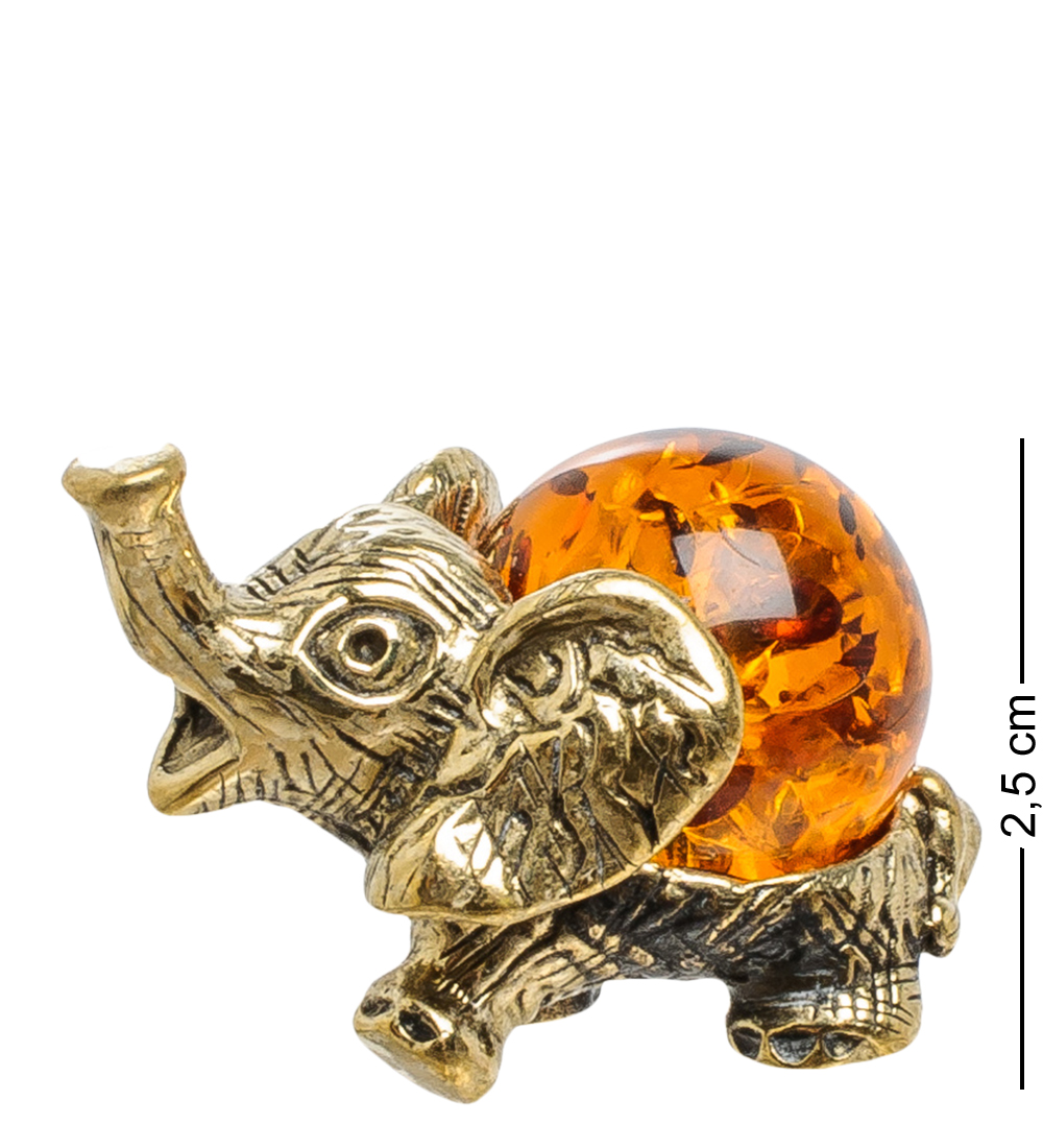 Am-1528 фигурка слоненок с шаром (латунь, янтарь)