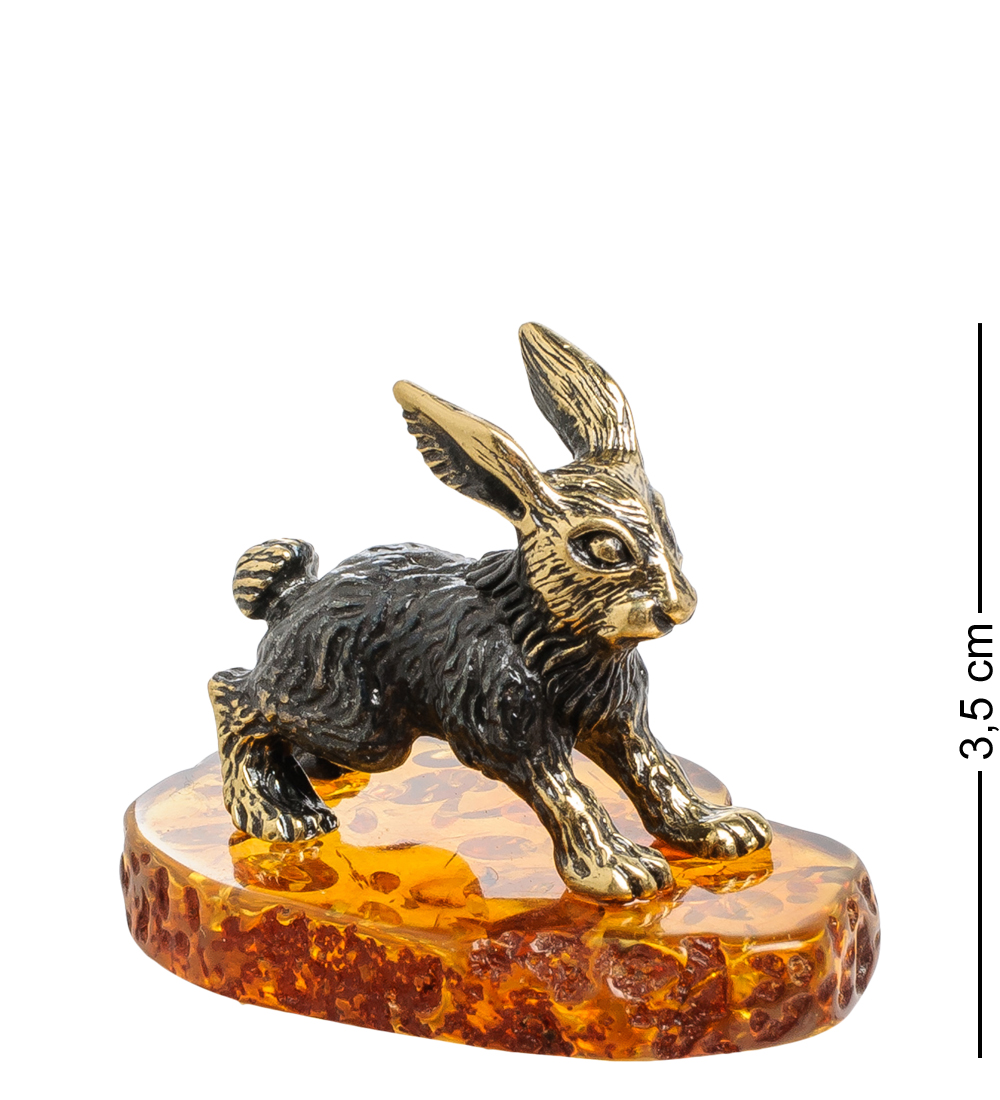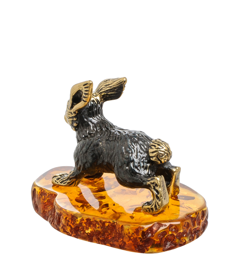 Am-1531 фигурка заяц полевой (латунь, янтарь)