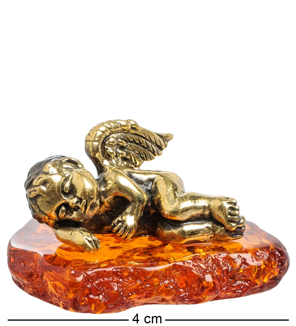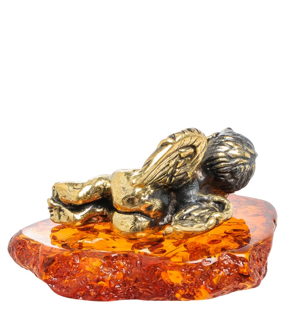 Am-1540 фигурка ангелочек спящий мал. (латунь, янтарь)