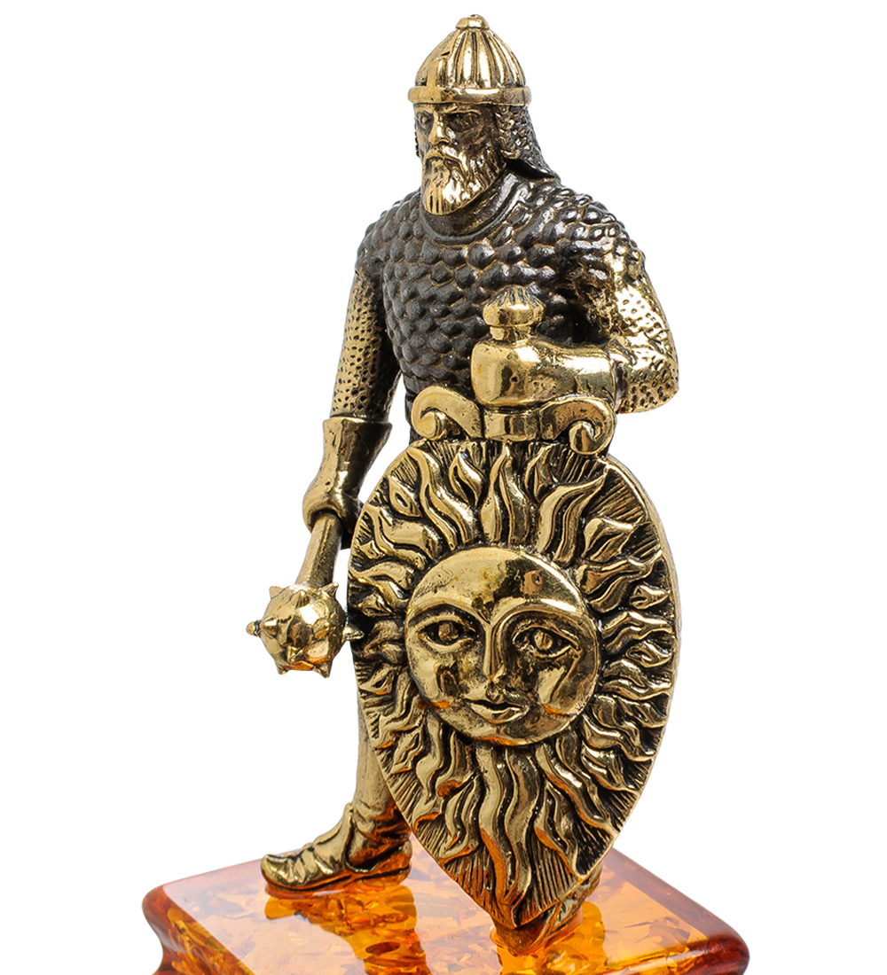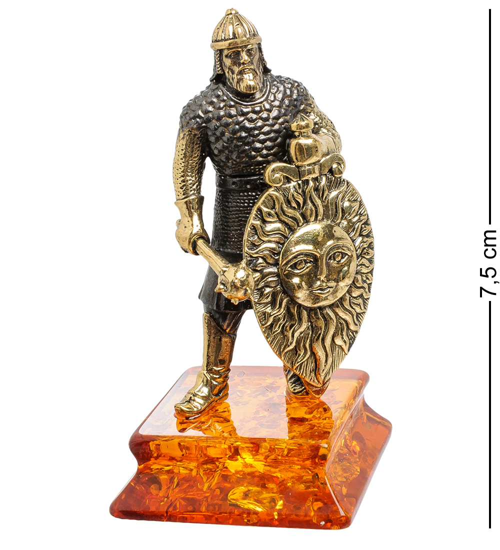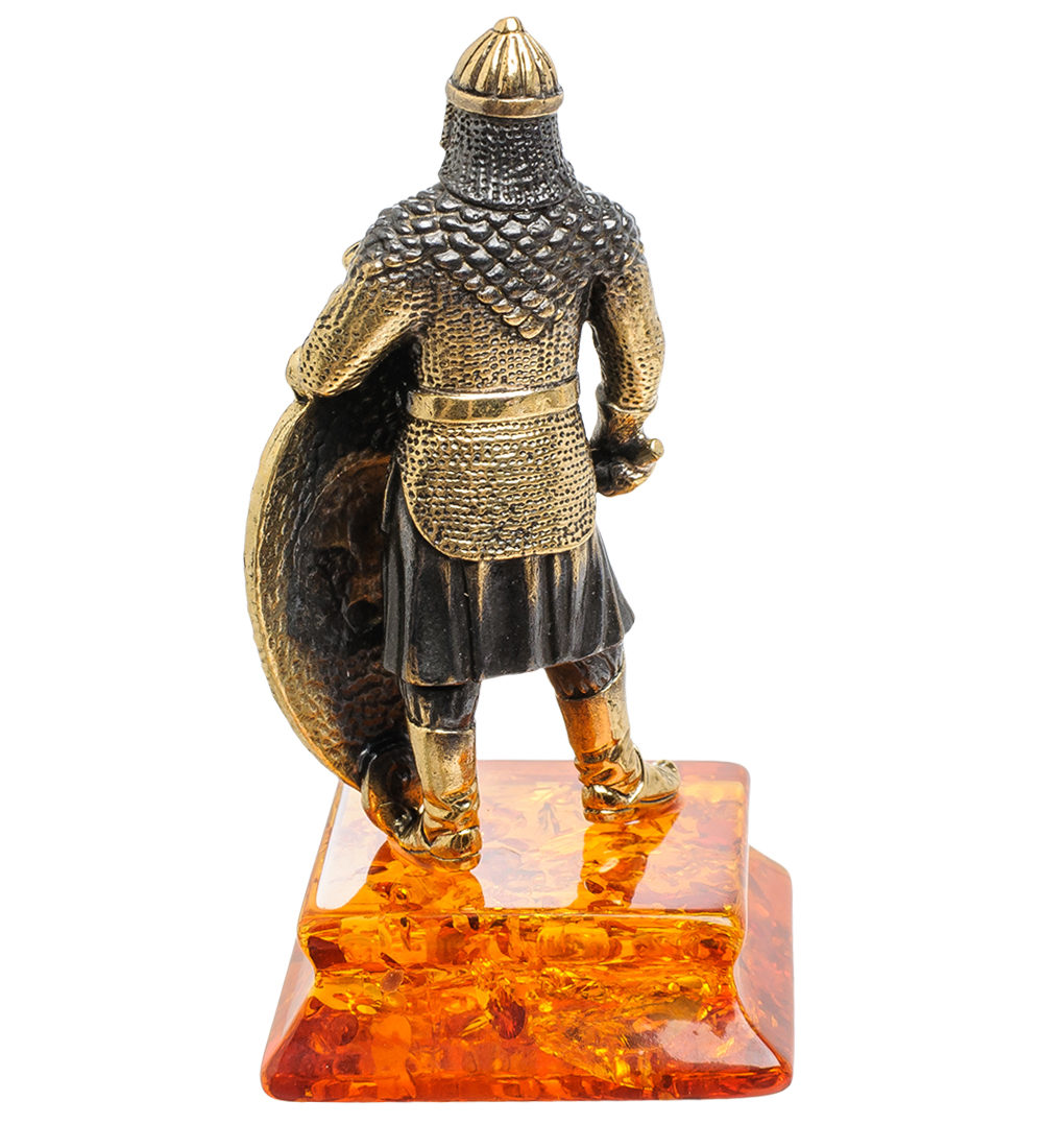 Am-1571 фигурка рыцарь славянский воин (латунь, янтарь)