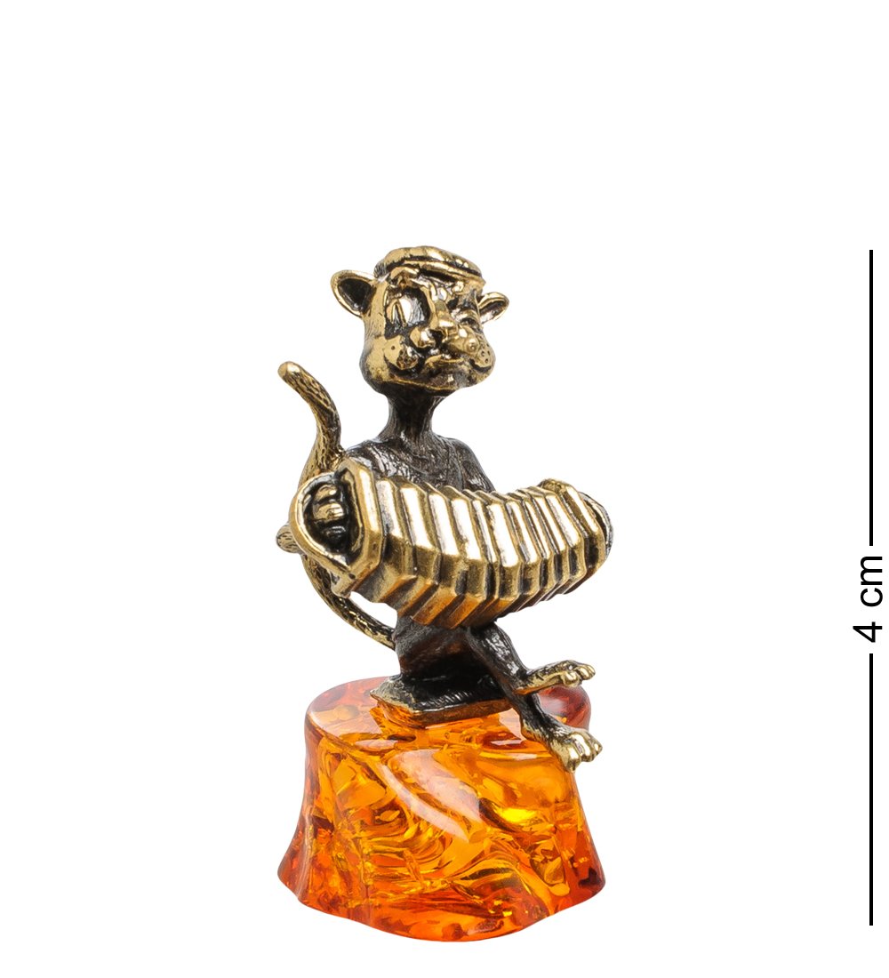 Am-1578 фигурка кот с гармошкой (латунь, янтарь)