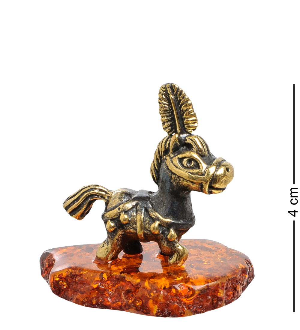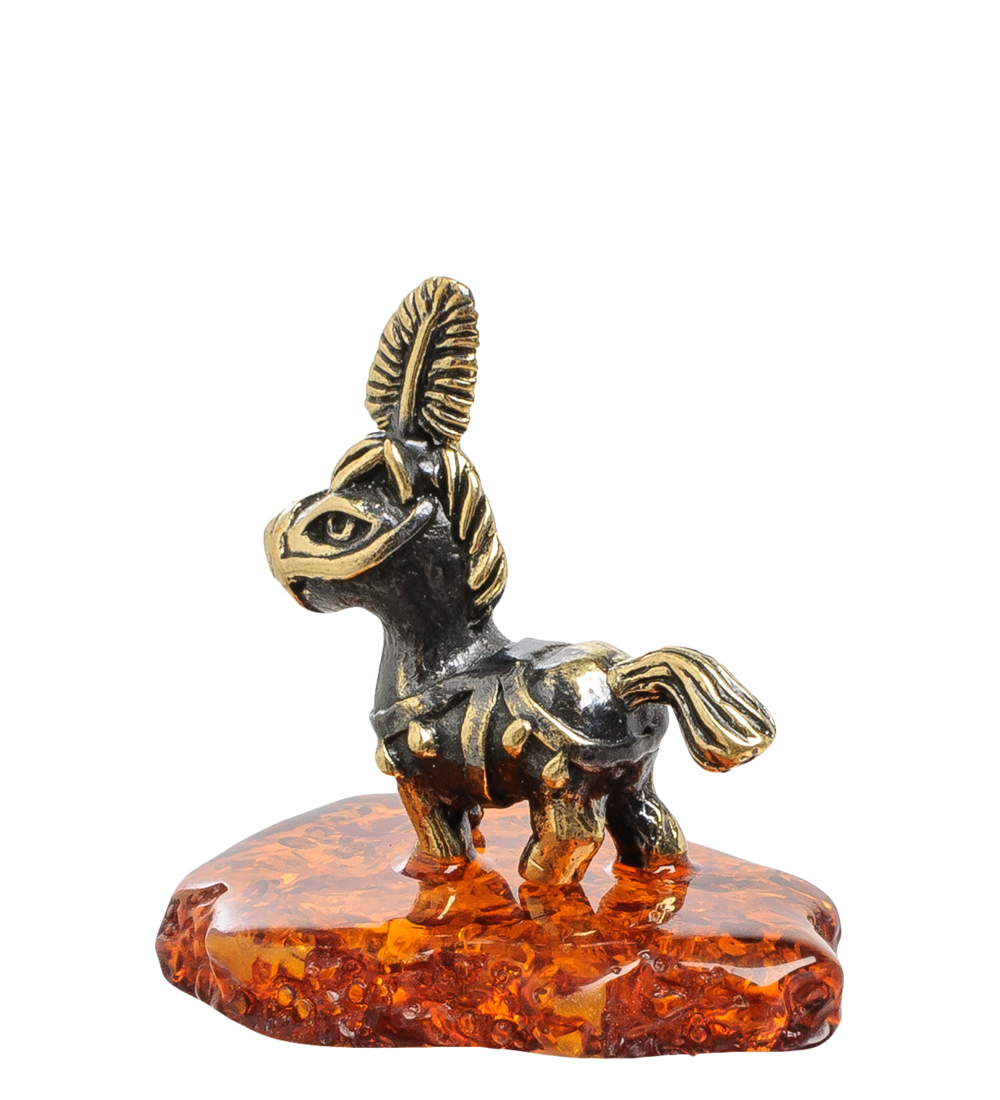 Am-1580 фигурка пони с пером (латунь, янтарь)