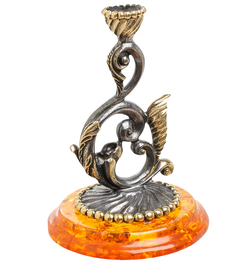 Am-1584 подсвечник ажурный (латунь, янтарь)