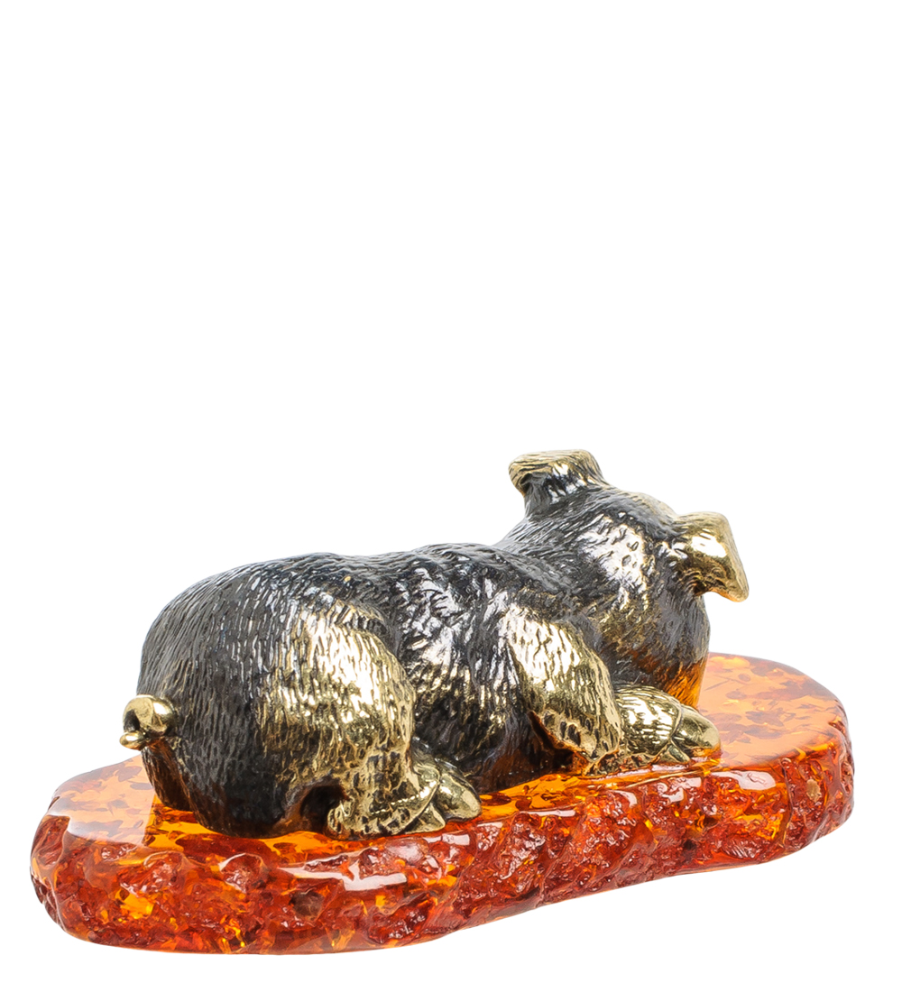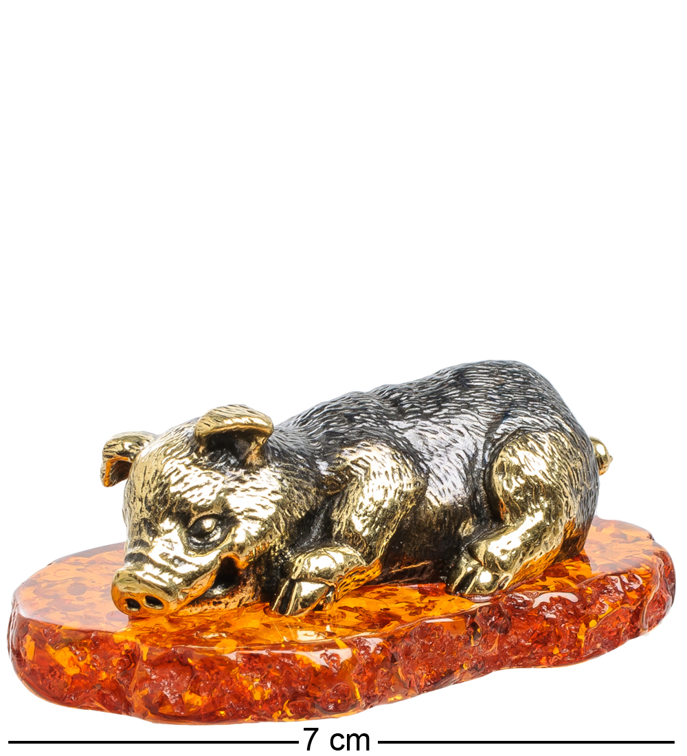 Am-1591 фигурка поросенок (латунь, янтарь)