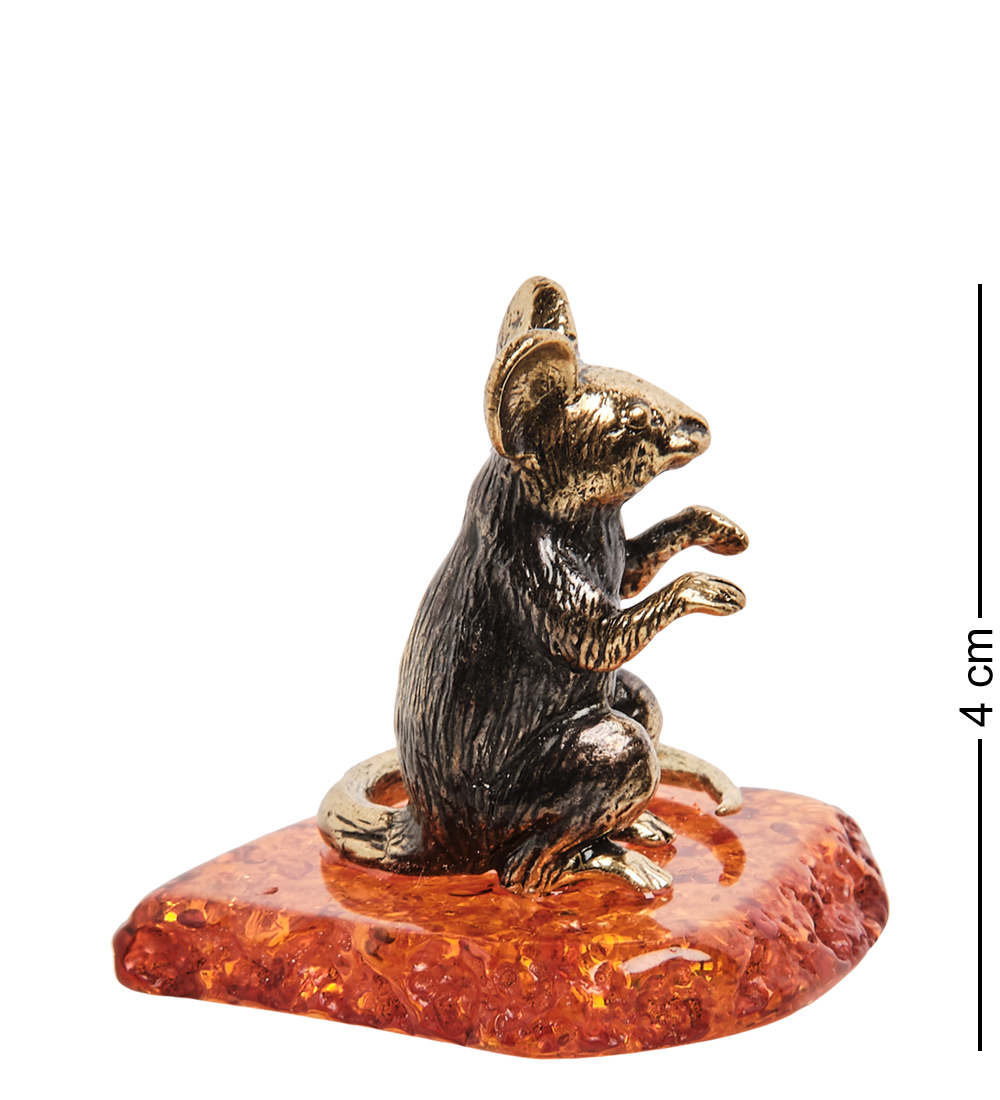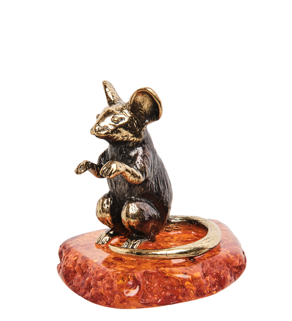 Am-1602 фигурка мышь антон (латунь, янтарь)